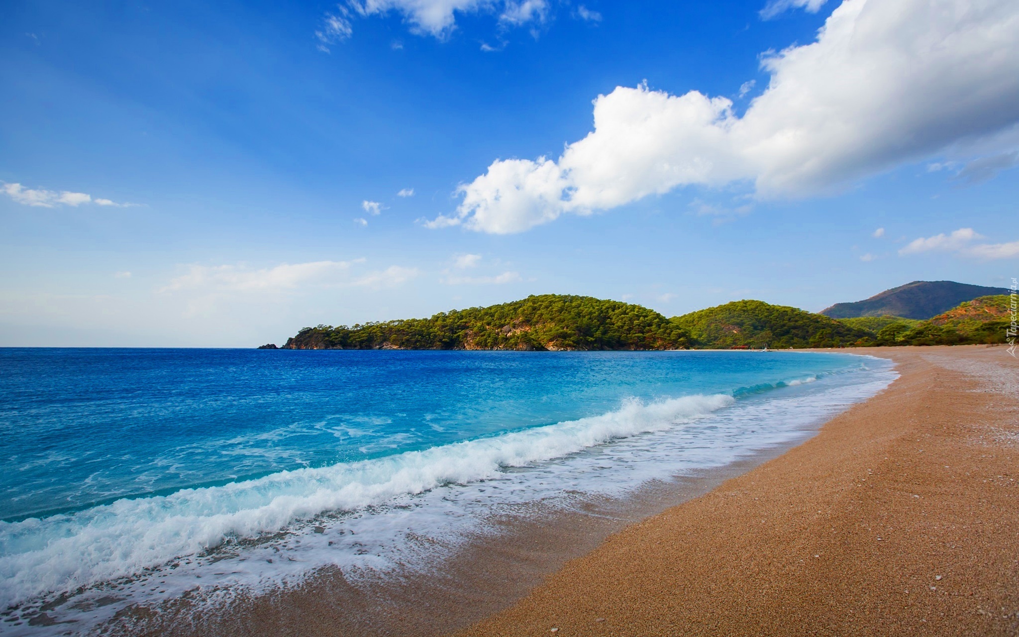 Edytor tapety: Morze, Plaża, Wzgórza, Lato