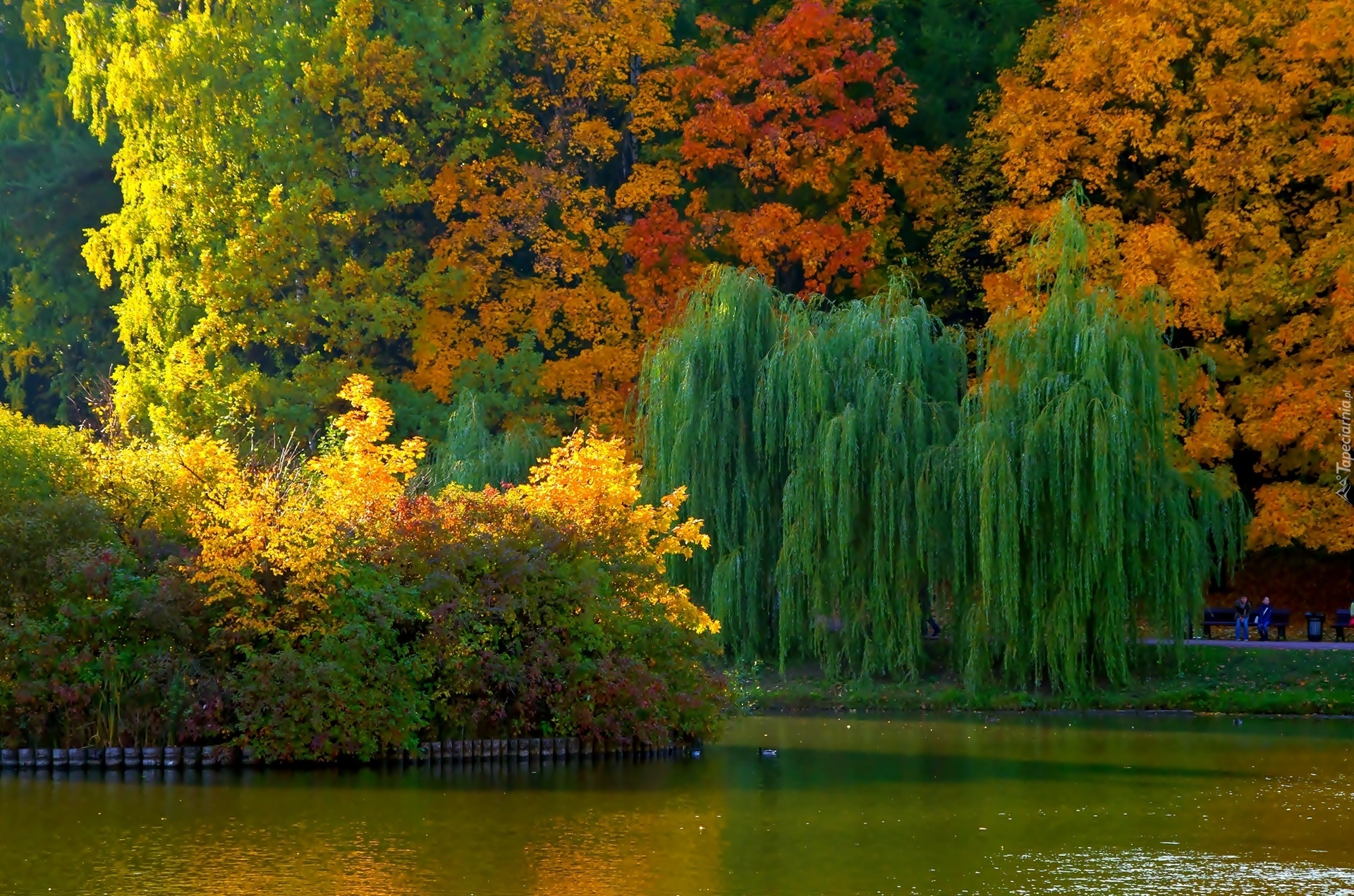 Edytor tapety: Park, Staw, Jesień, Kolorowe, Drzewa