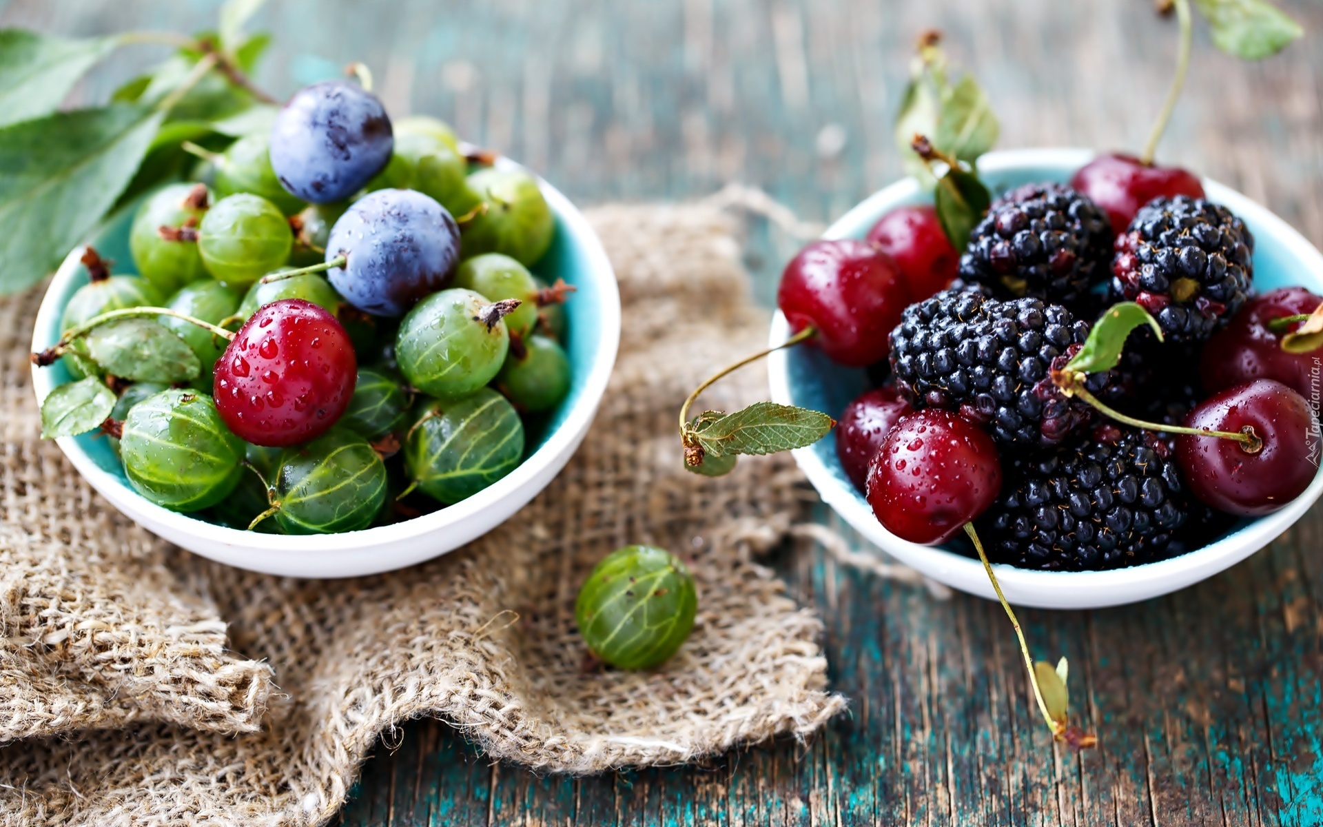 Edytor tapety: Owoce, Agrest, Jeżyny, Wiśnia, Śliwka