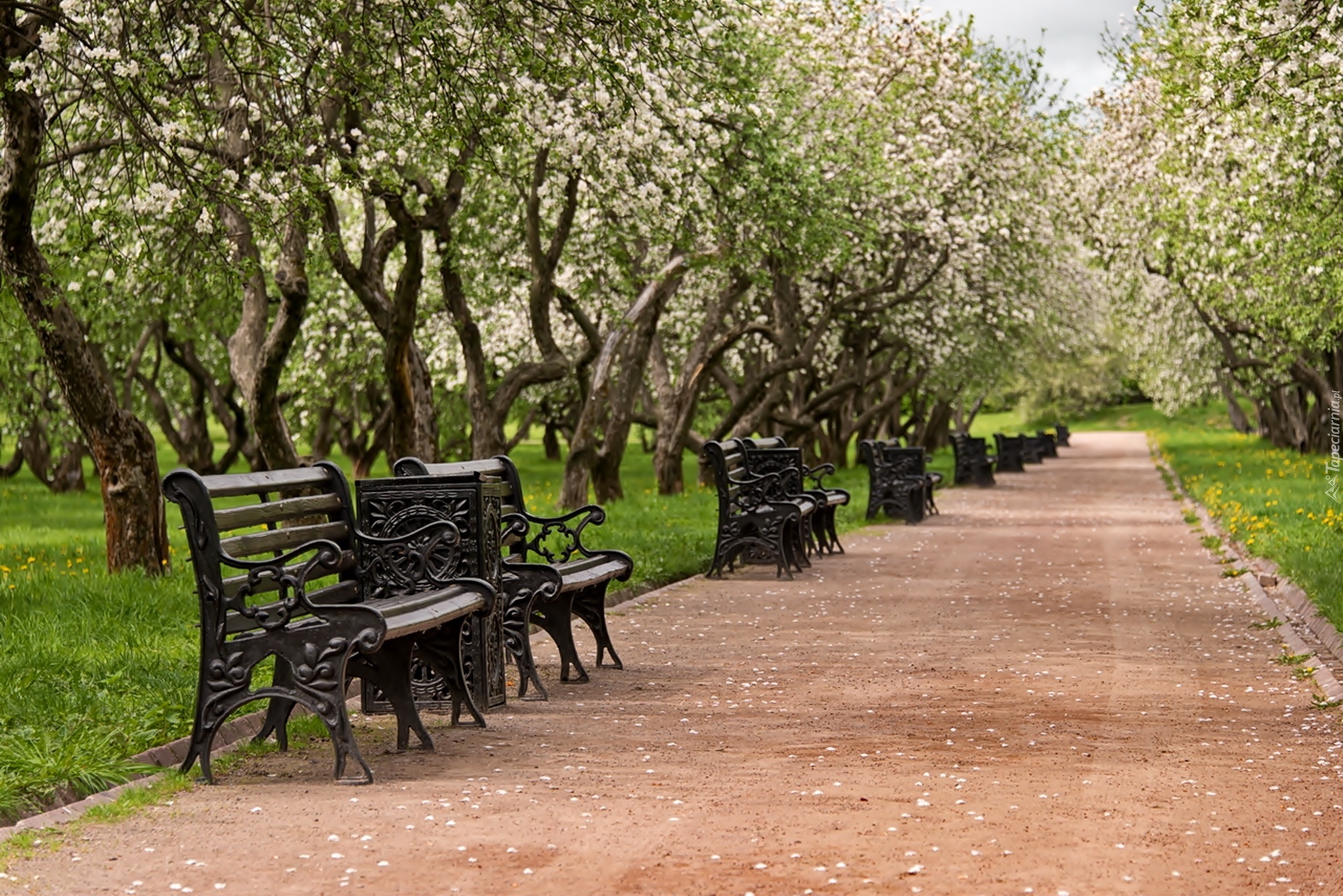 Edytor tapety: Park, Drzewa, Alejka, Ławki