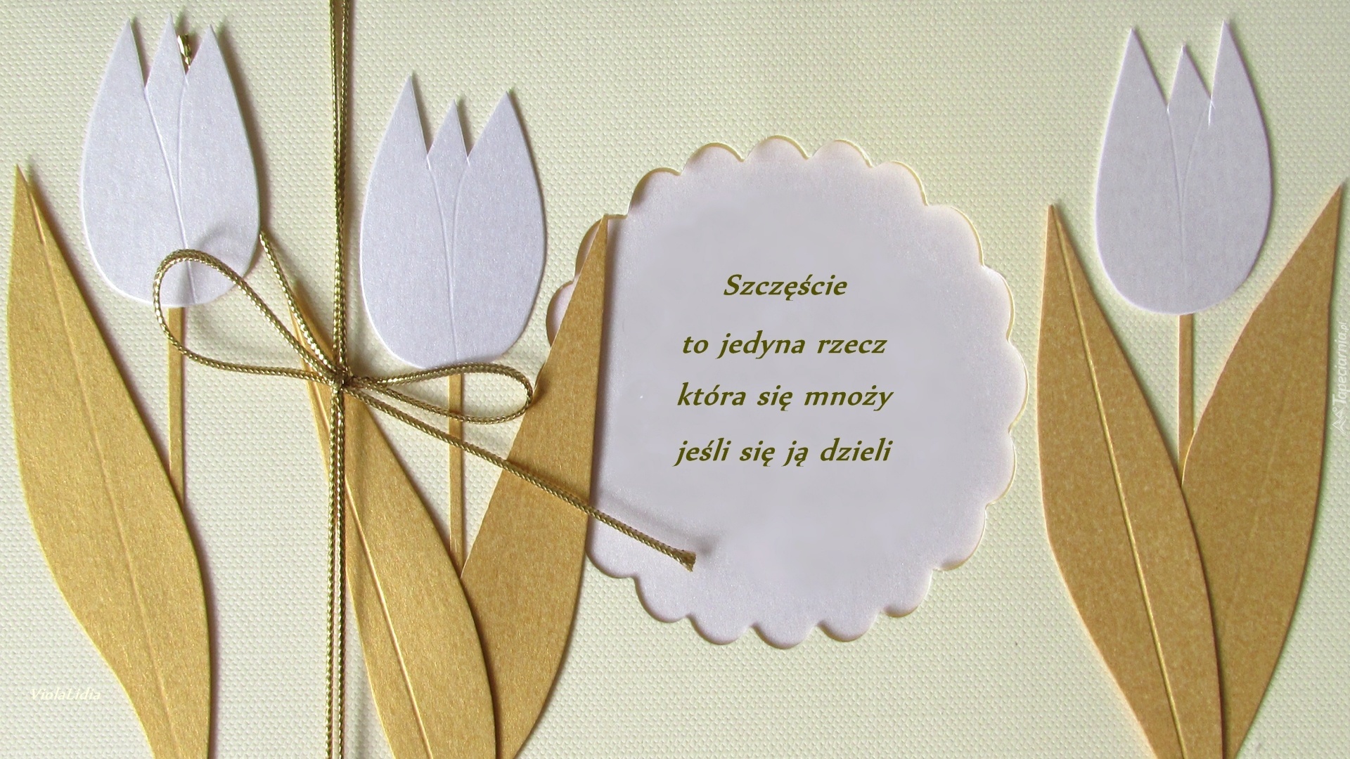Edytor tapety: Kartka, Tulipany, Cytat, Wycinanka