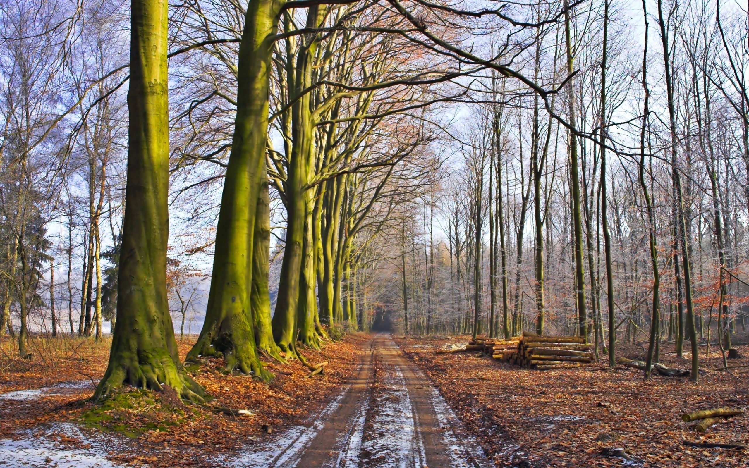 Edytor tapety: Jesień, Droga, Las, Wycinka