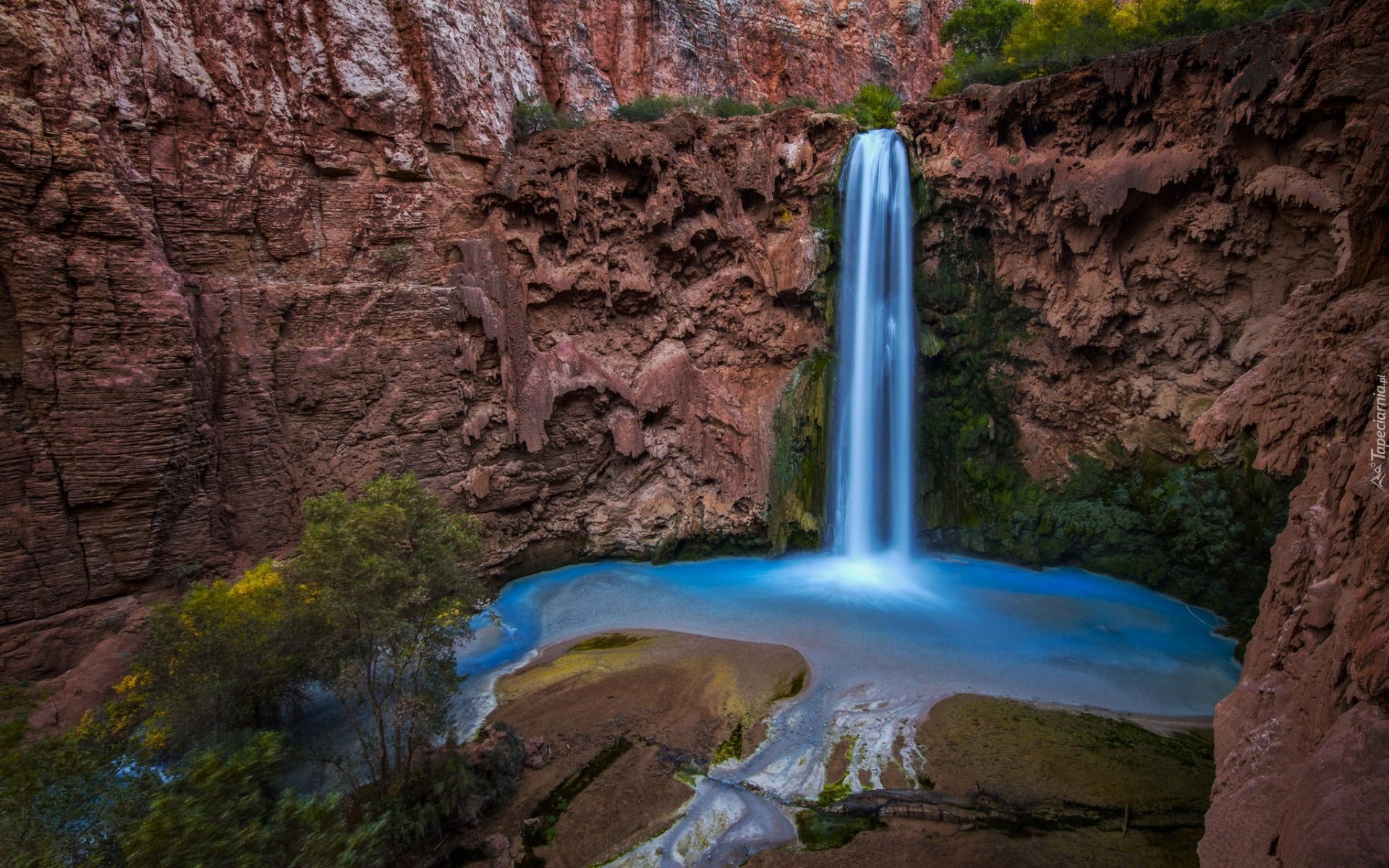 Edytor tapety: Wodospad, Skały, Drzewo