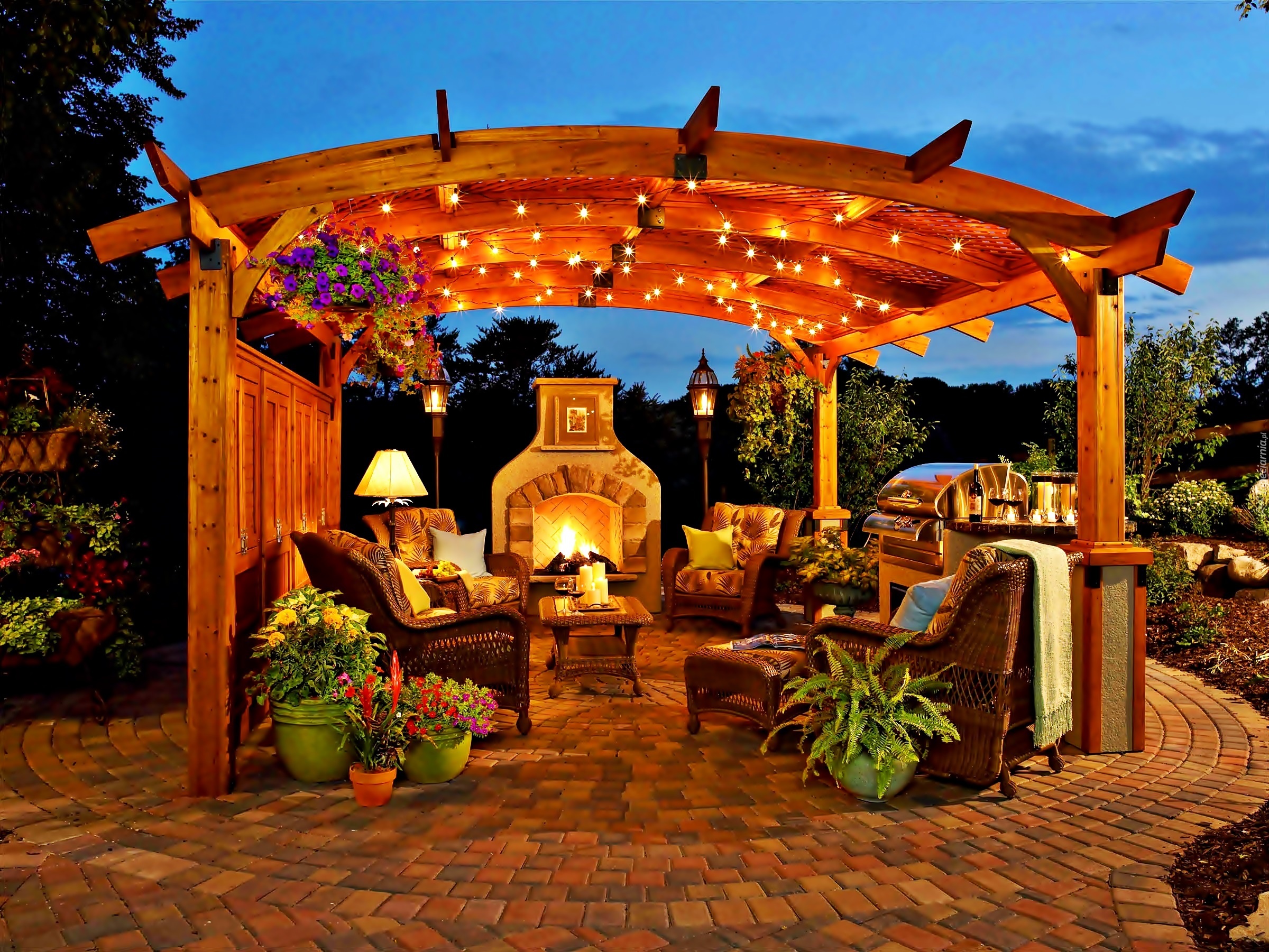 Edytor tapety: Ogród, Altana, Kominek, Komplet, Wypoczynkowy