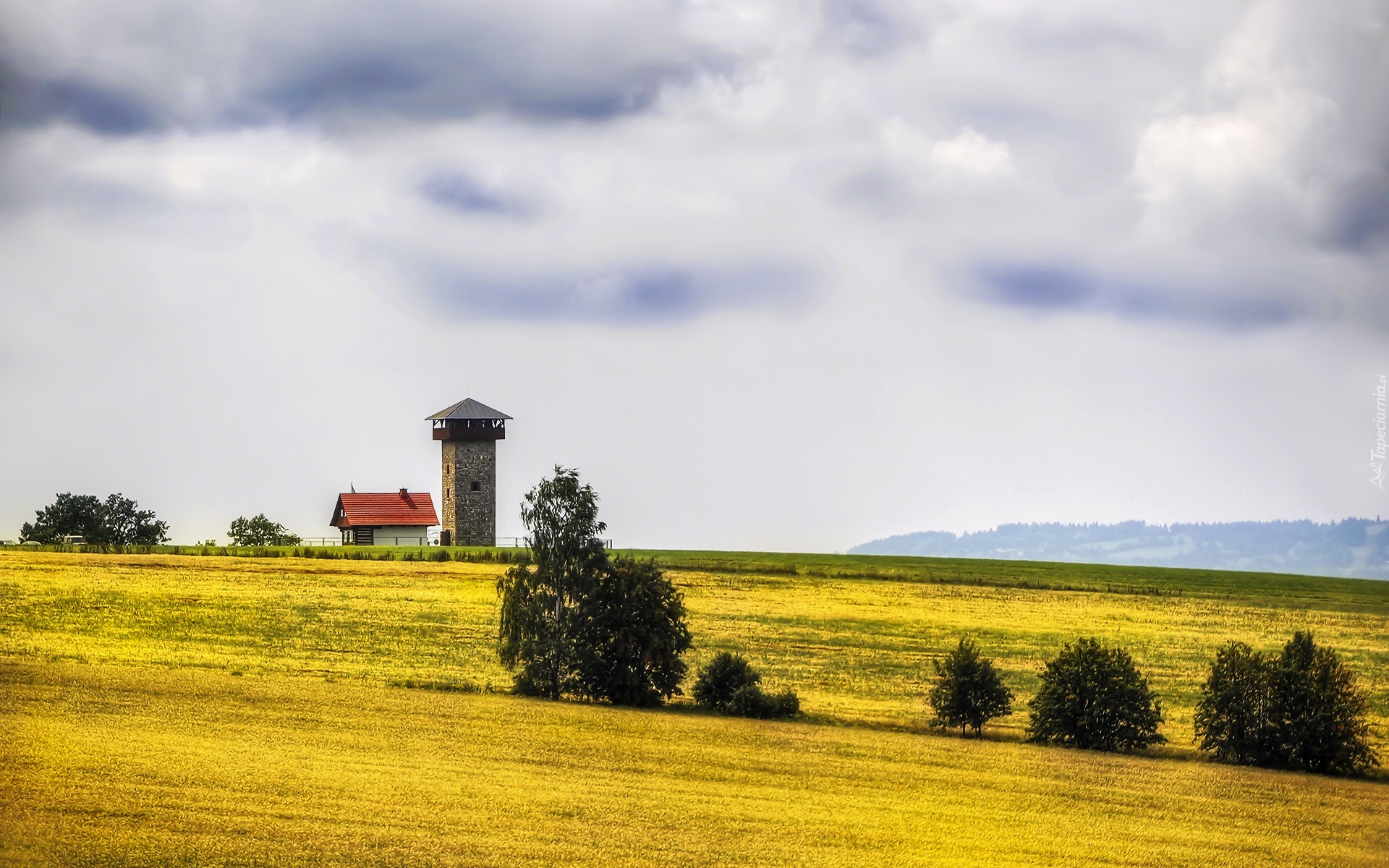 Edytor tapety: Wieża, Strażnica, Góry, Pola, Karkonosze, Czechy