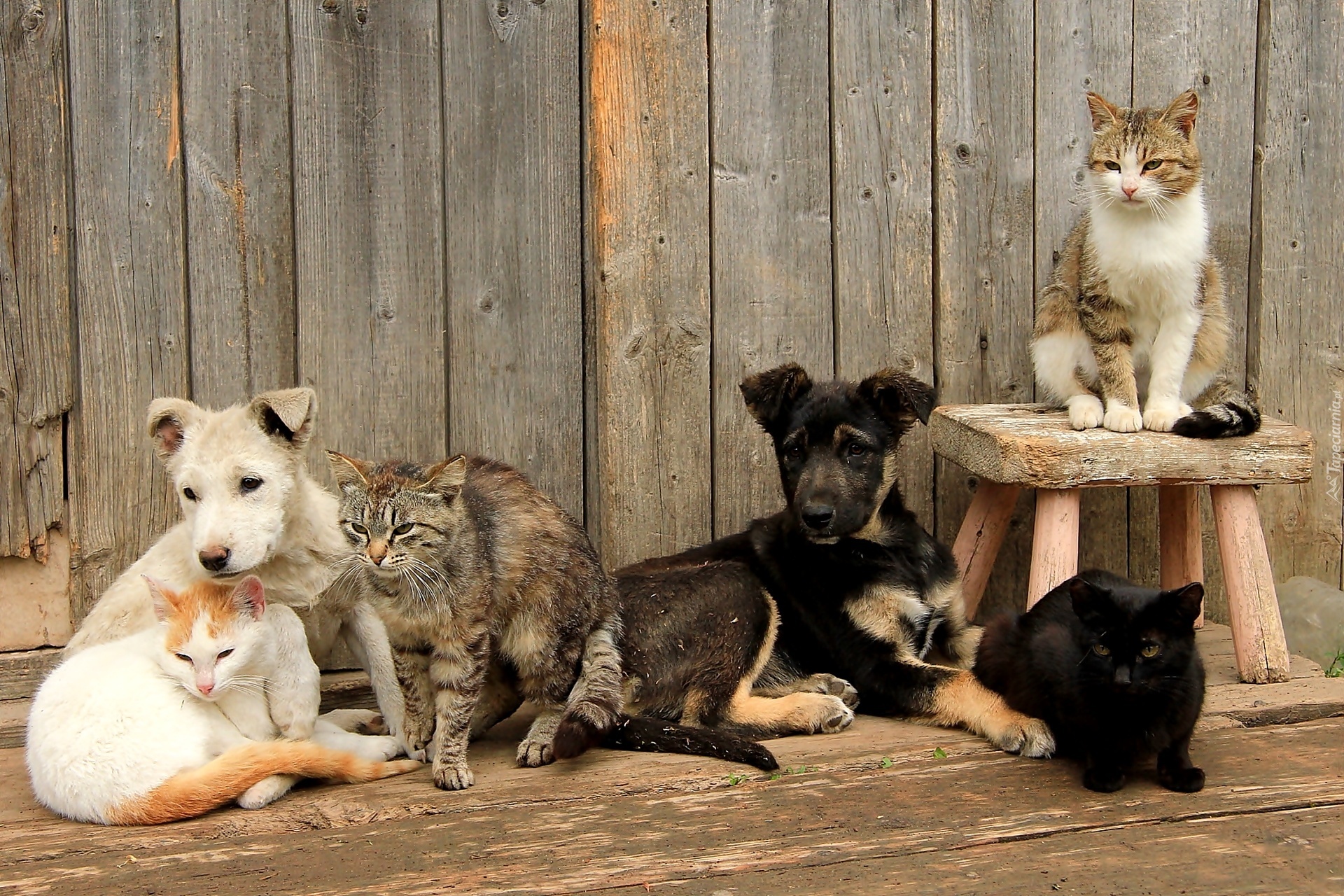 Edytor tapety: Dwa, Psy, Cztery, Koty