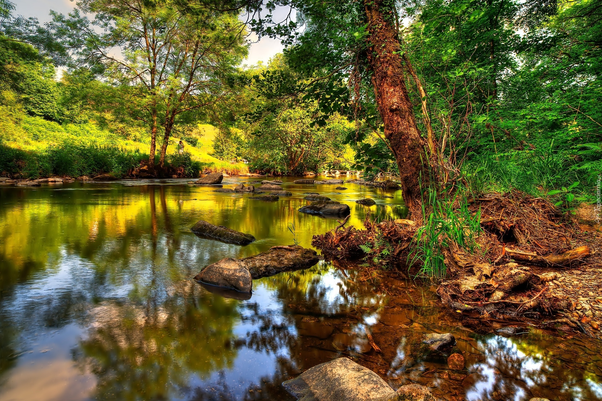 Edytor tapety: Kamienie, Las, Rzeka