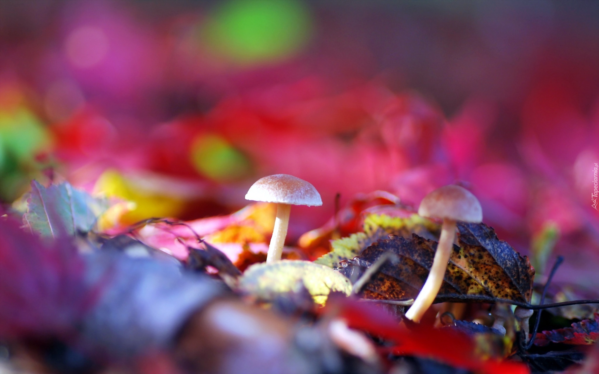 Edytor tapety: Grzybki, Kolory, Liście, Makro