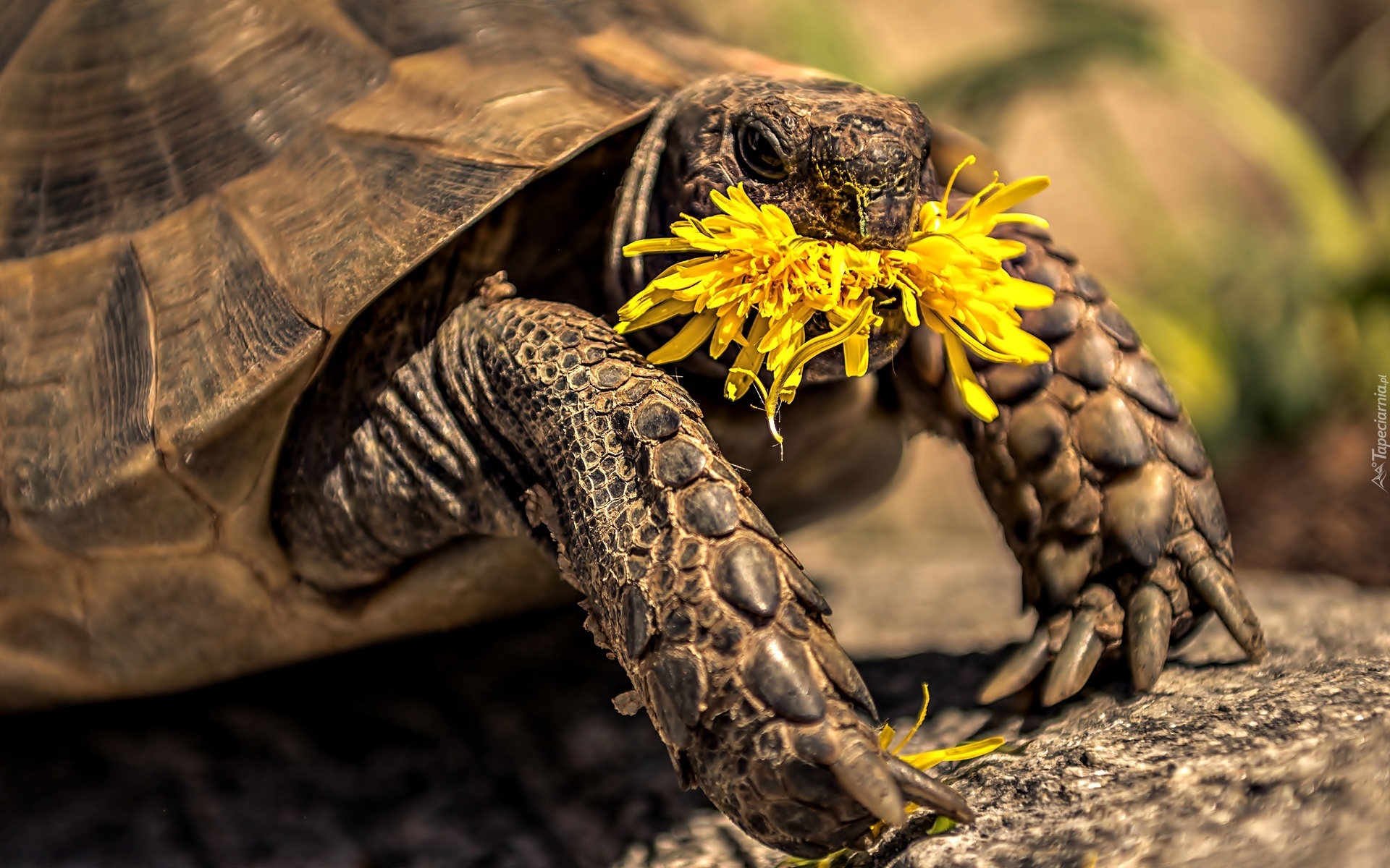 Edytor tapety: Żółw, Żółty, Kwiatek, Mniszek