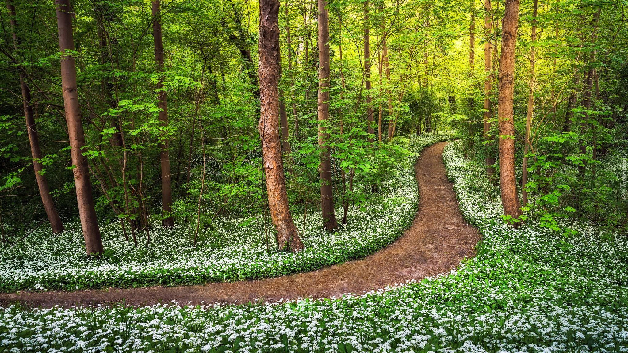 Edytor tapety: Las, Ścieżka, Białe, Kwiatki