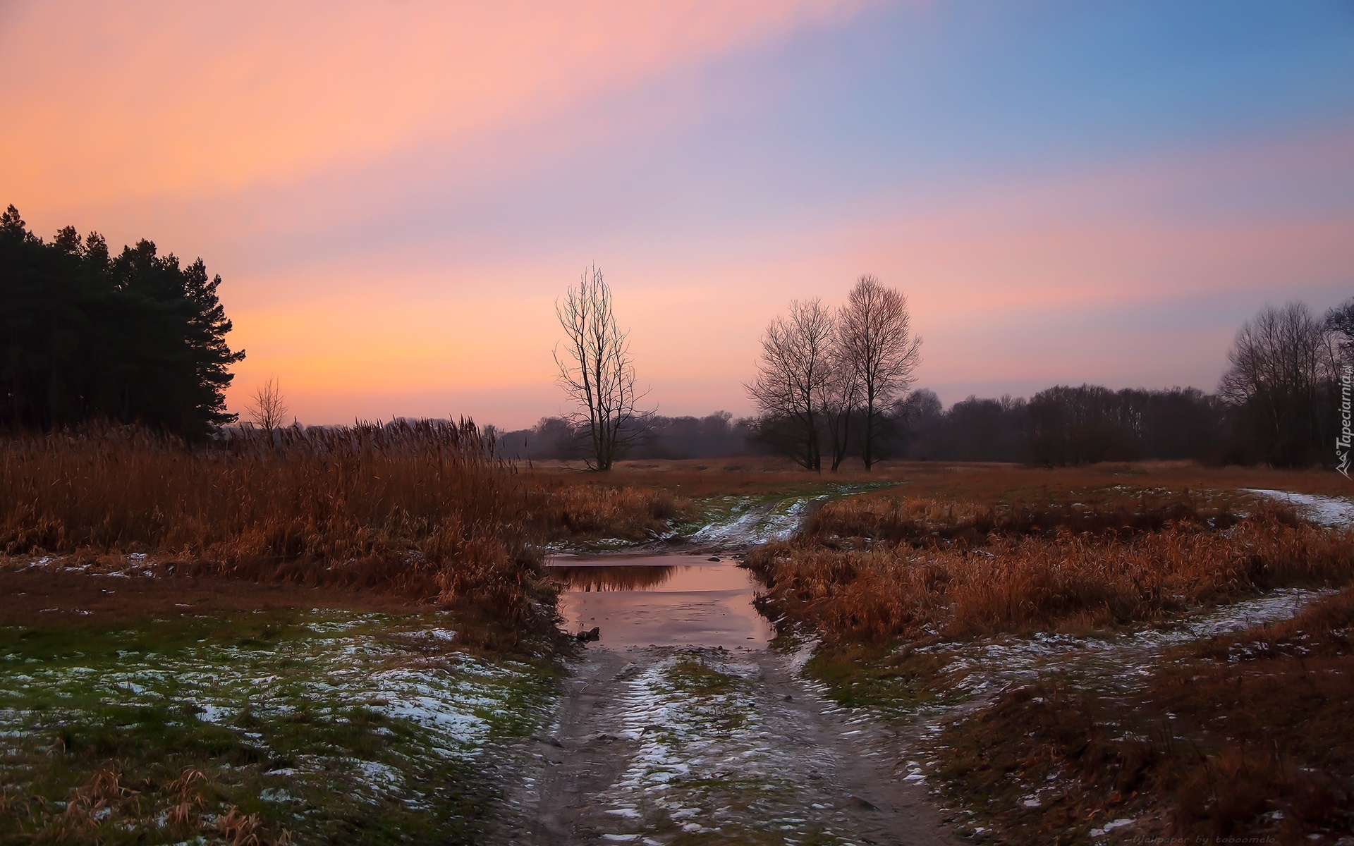 Edytor tapety: Droga, Ścieżka, Woda, Łąka, Śnieg.