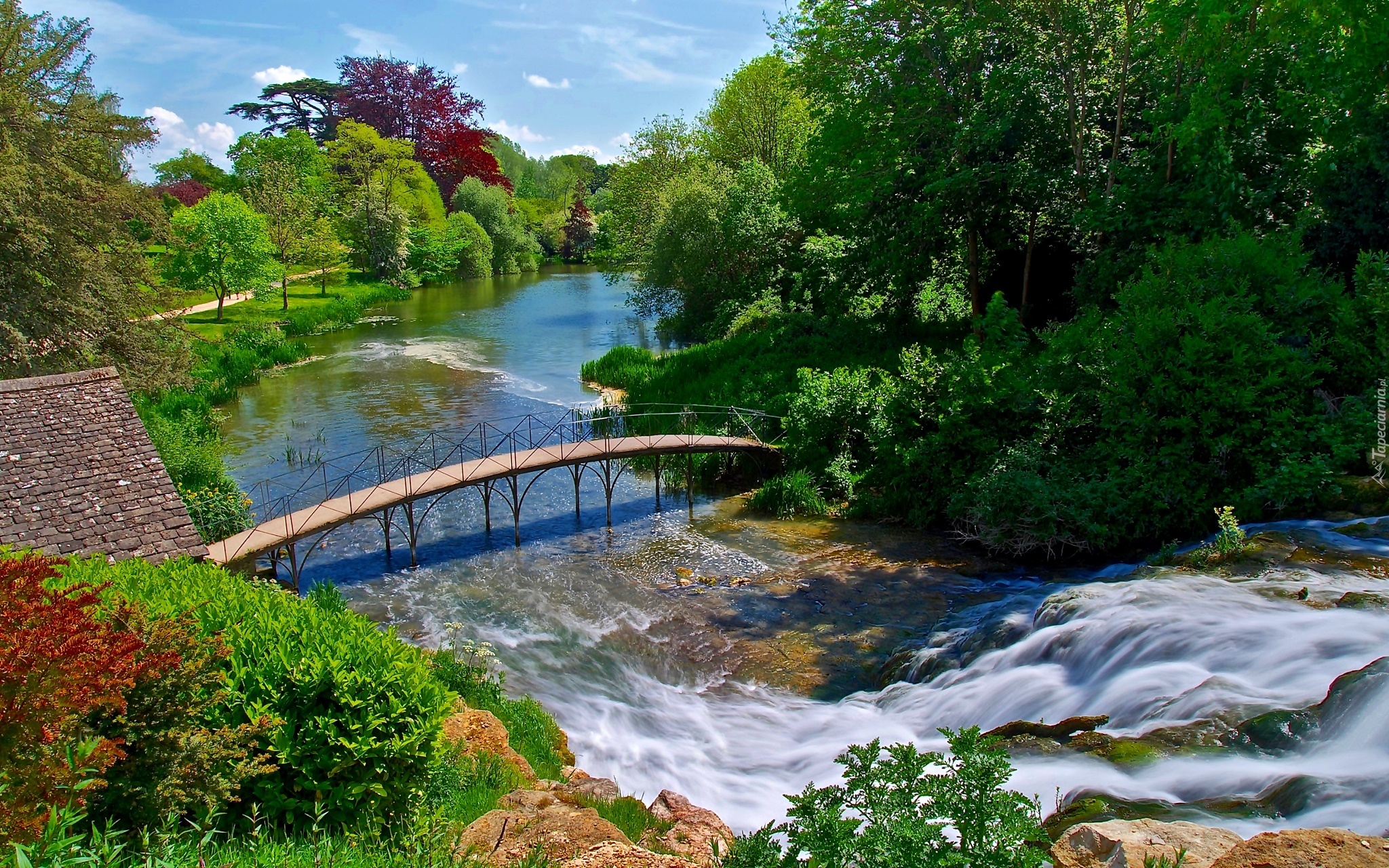 Edytor tapety: Rwąca, Rzeka, Most, Drzewa