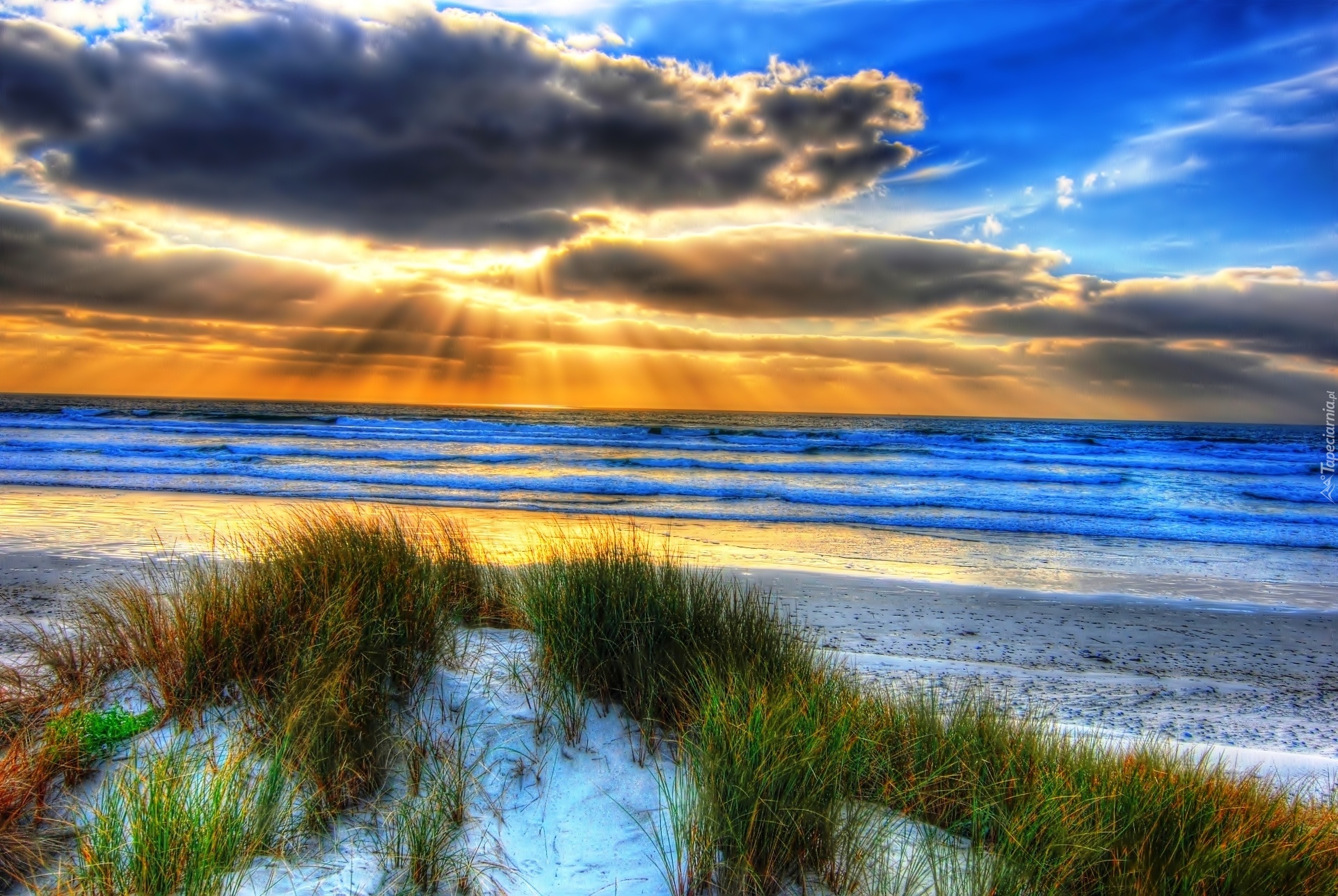 Edytor tapety: Morze, Plaża, Chmury, Trawa