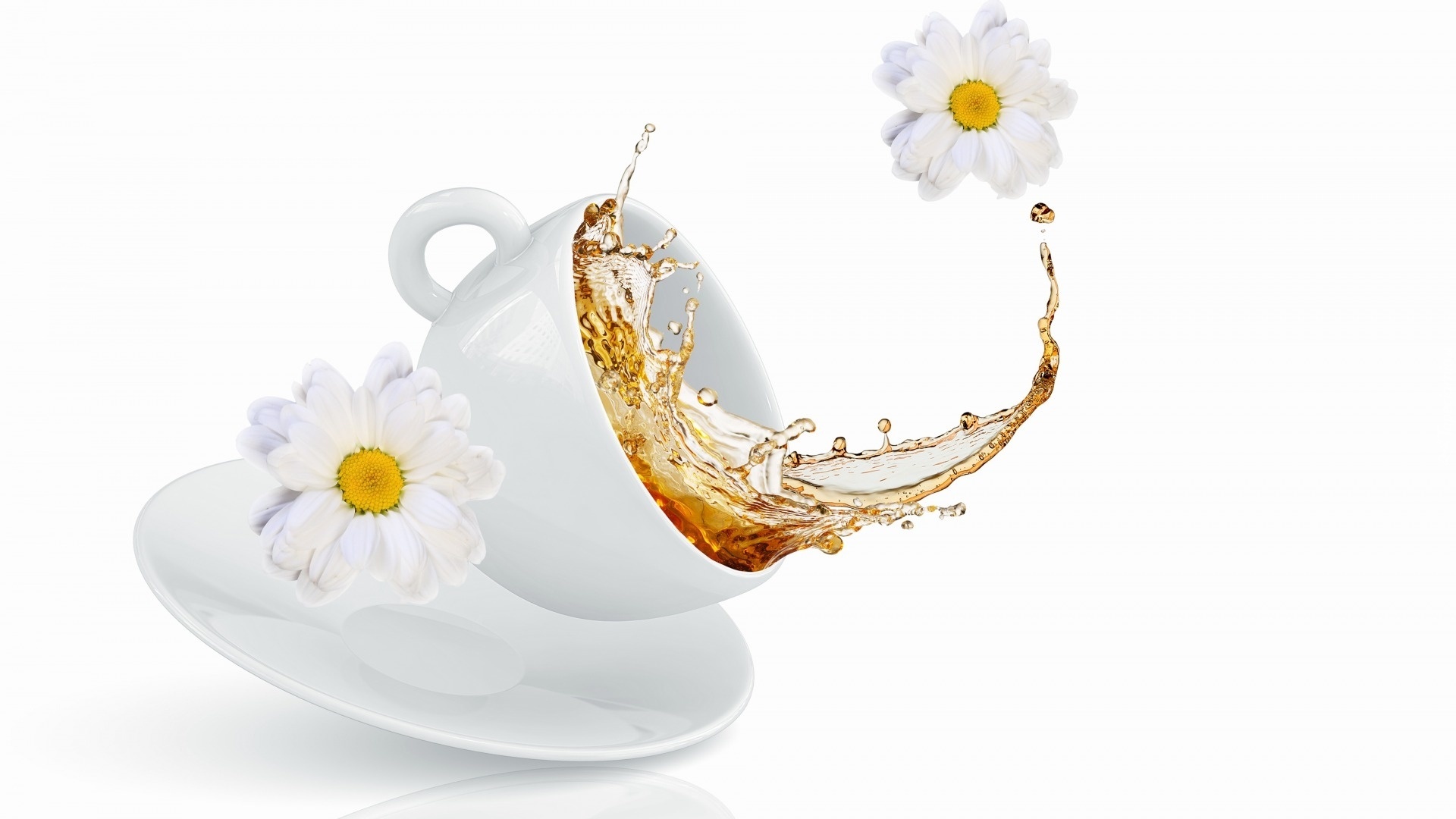 Edytor tapety: Napoj, Herbata, Filiżanka, Spodek, Margaretki