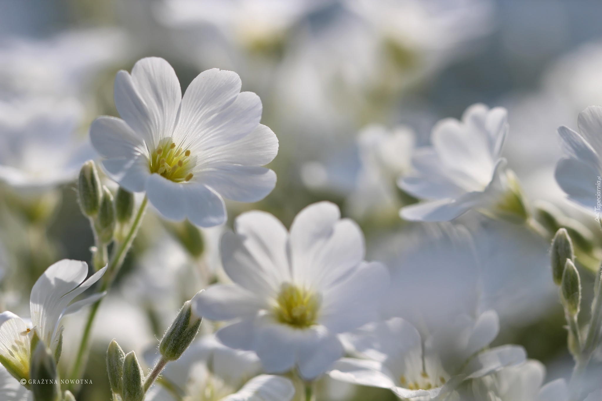 Edytor tapety: Rogownica, Białe, Kwiaty