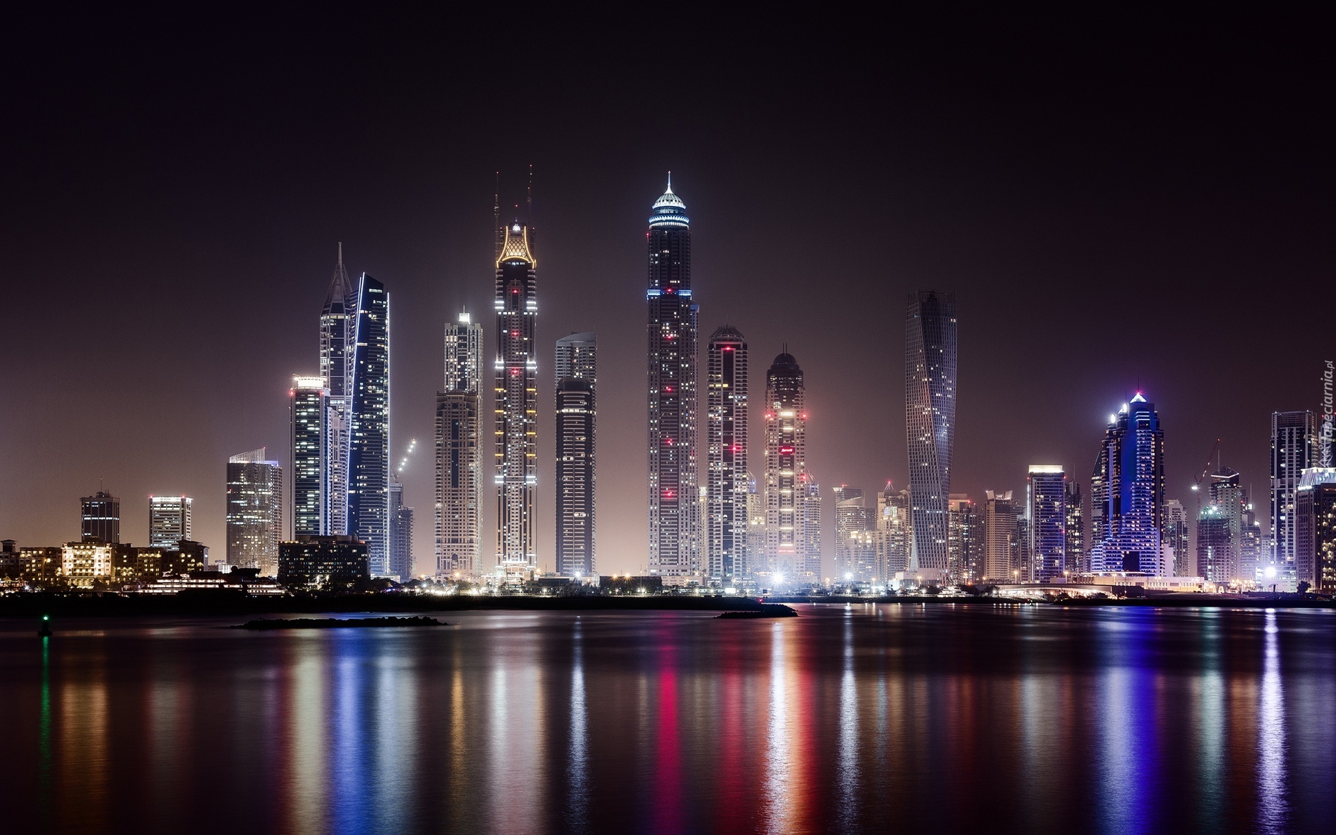 Edytor tapety: Noc, Wieżowce, Dubaj