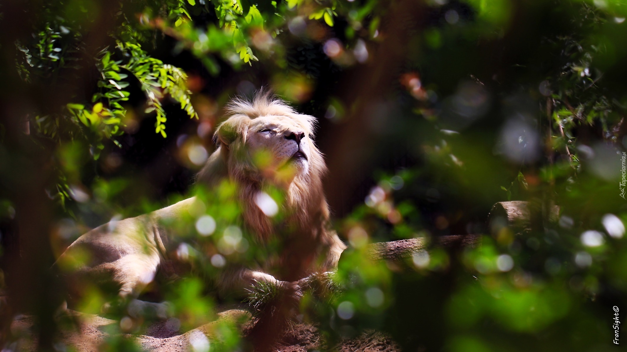 Edytor tapety: Biały Lew, Przebijające Światło, Zarośla, Ogród Zoologiczny