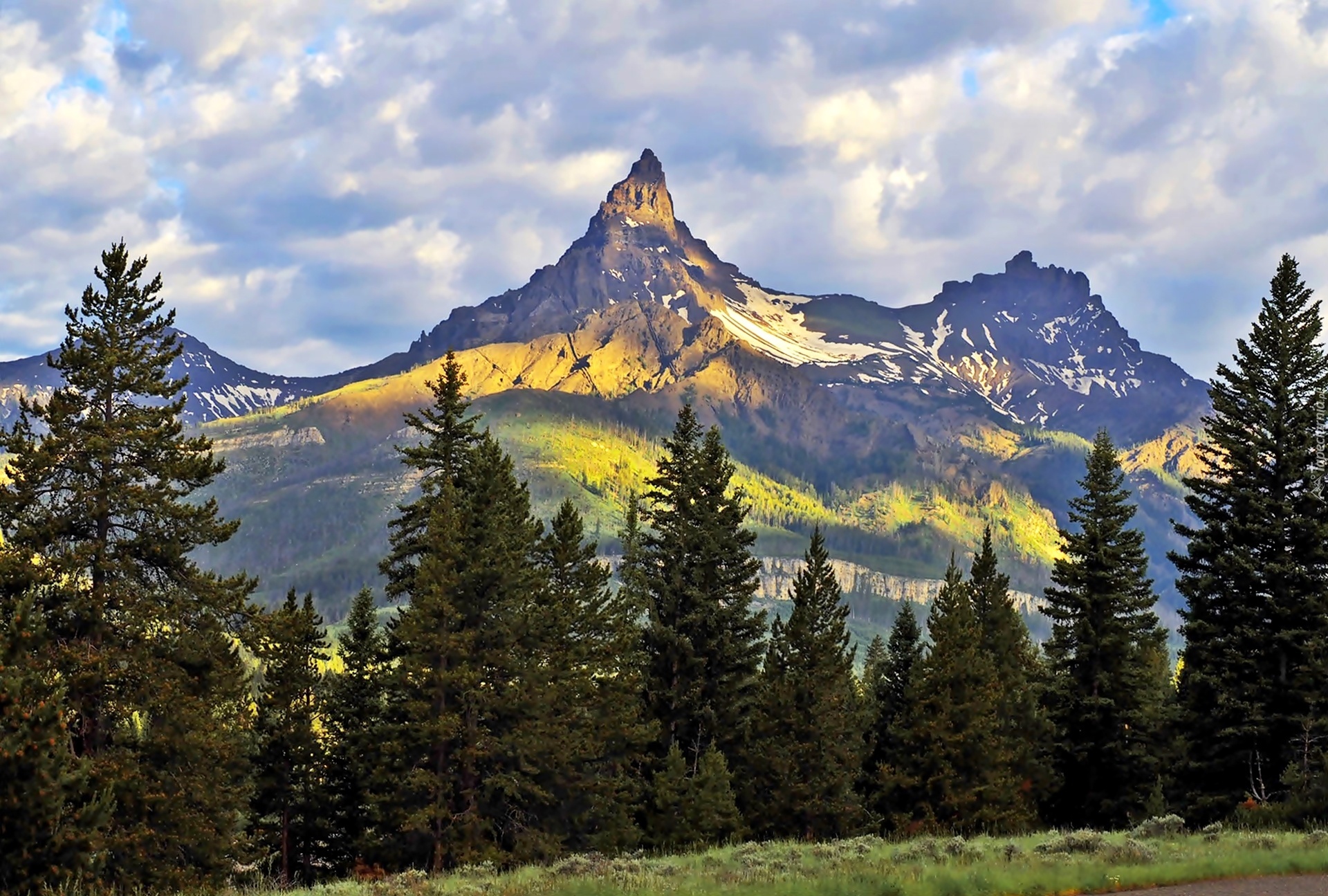 Edytor tapety: Góry, Przebijające, Światło, Świerki