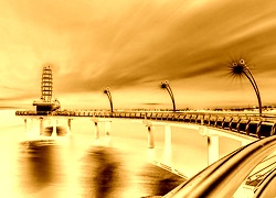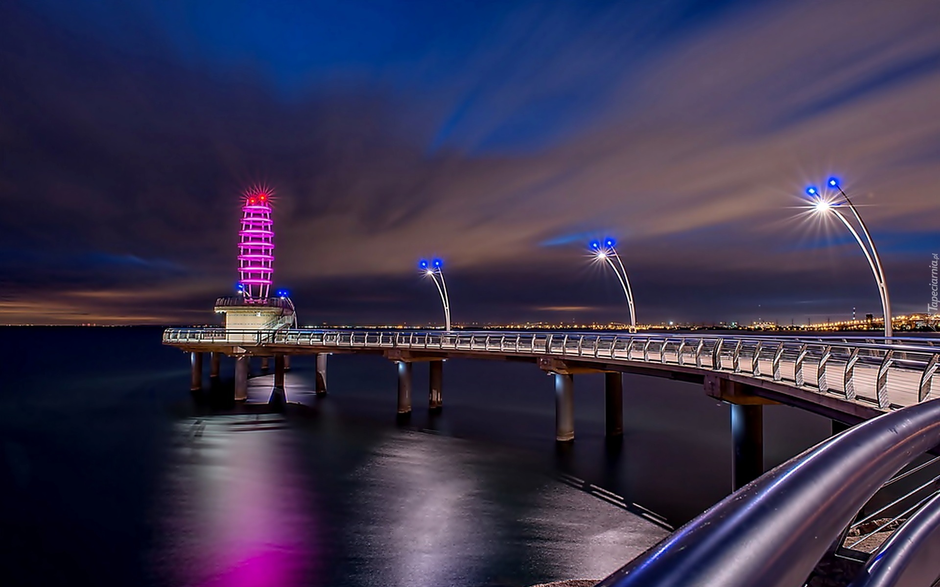 Edytor tapety: Morze, Molo, Przystań, Latarnie, Noc