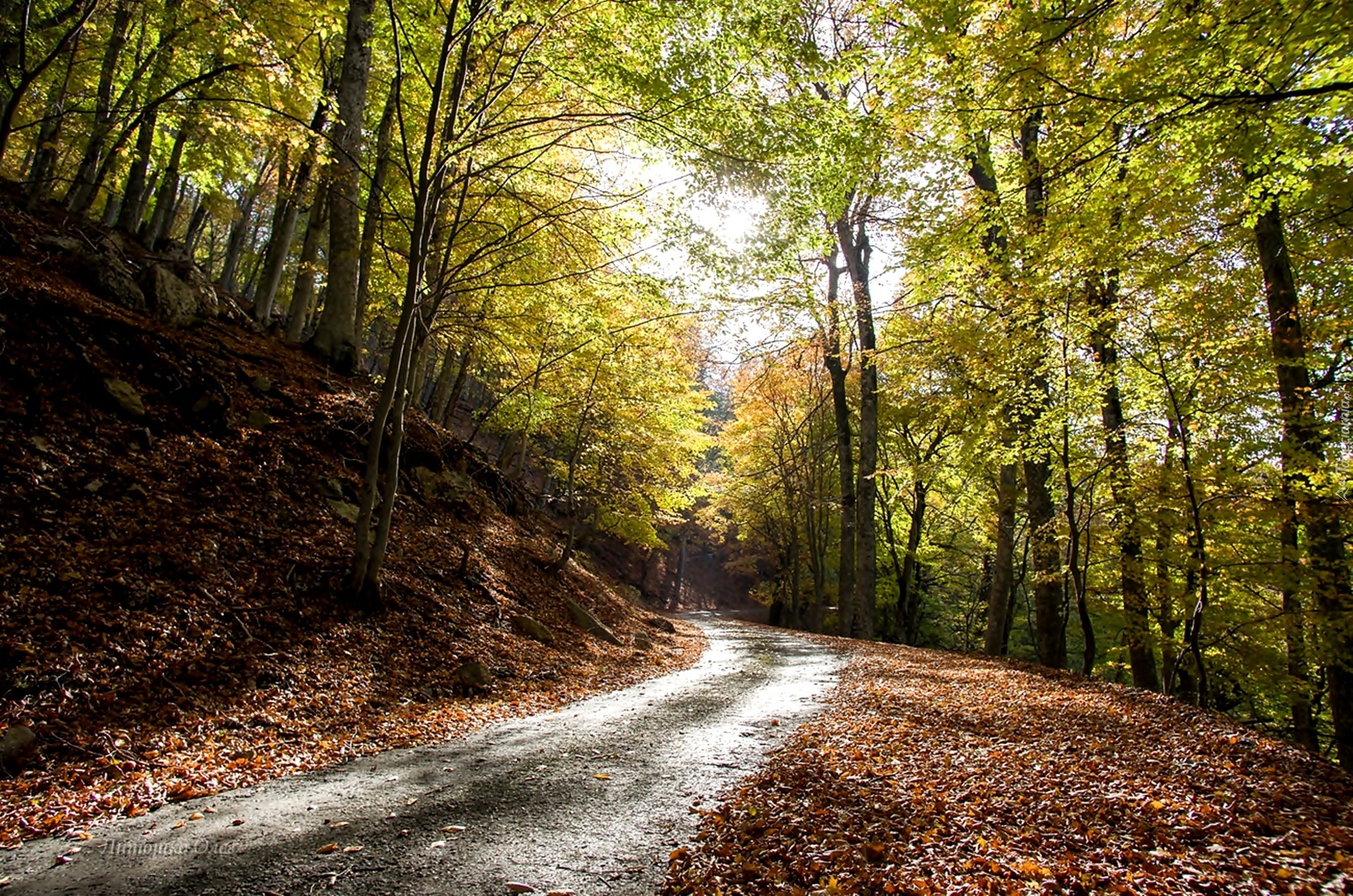 Edytor tapety: Las, Droga, Liście