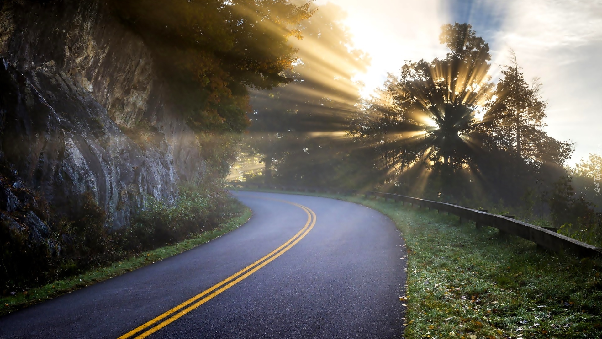 Edytor tapety: Droga, Skała, Promienie, Słońca