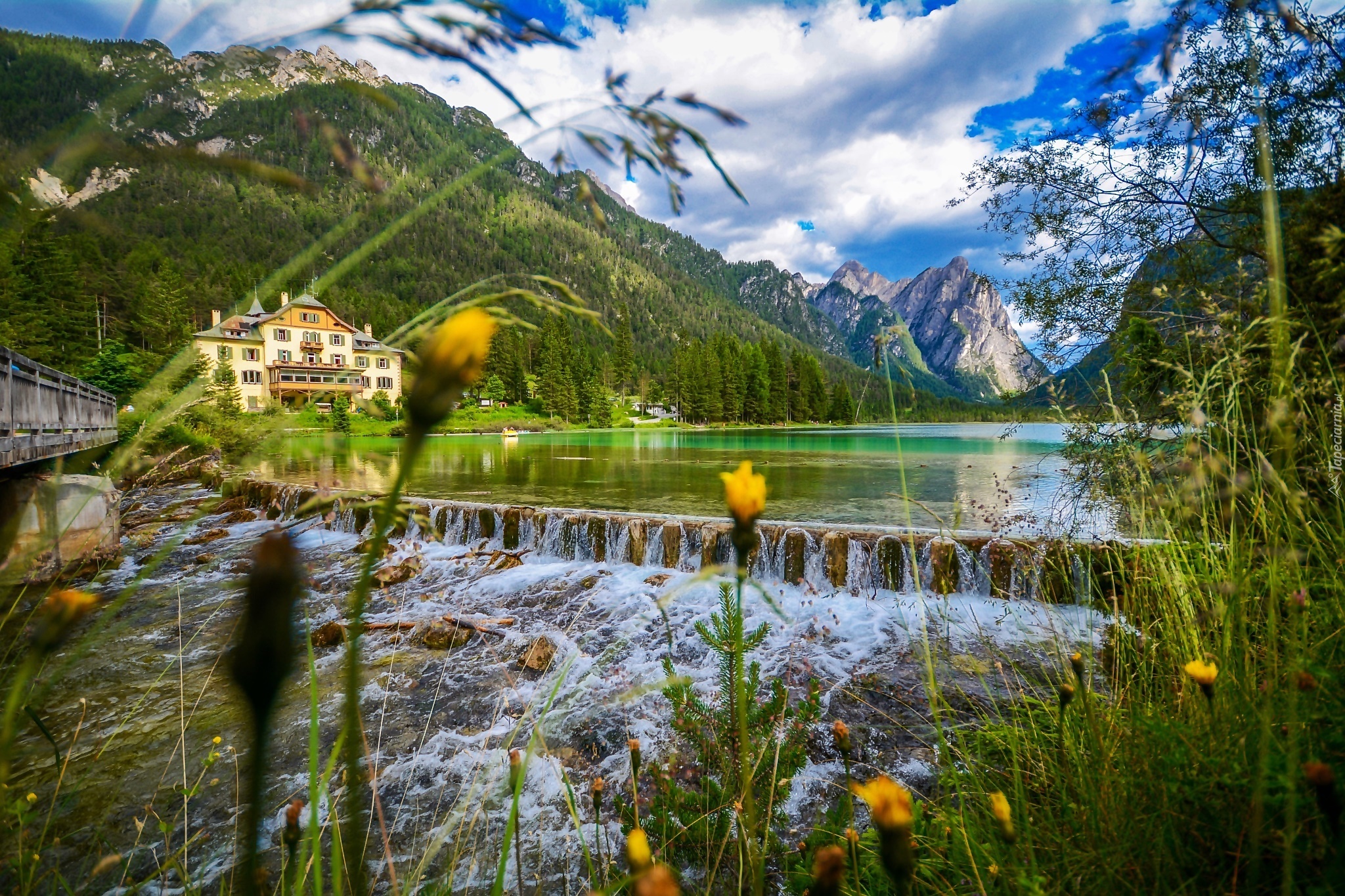 Edytor tapety: Góry, Rzeka, Kaskada, Dom, Włochy