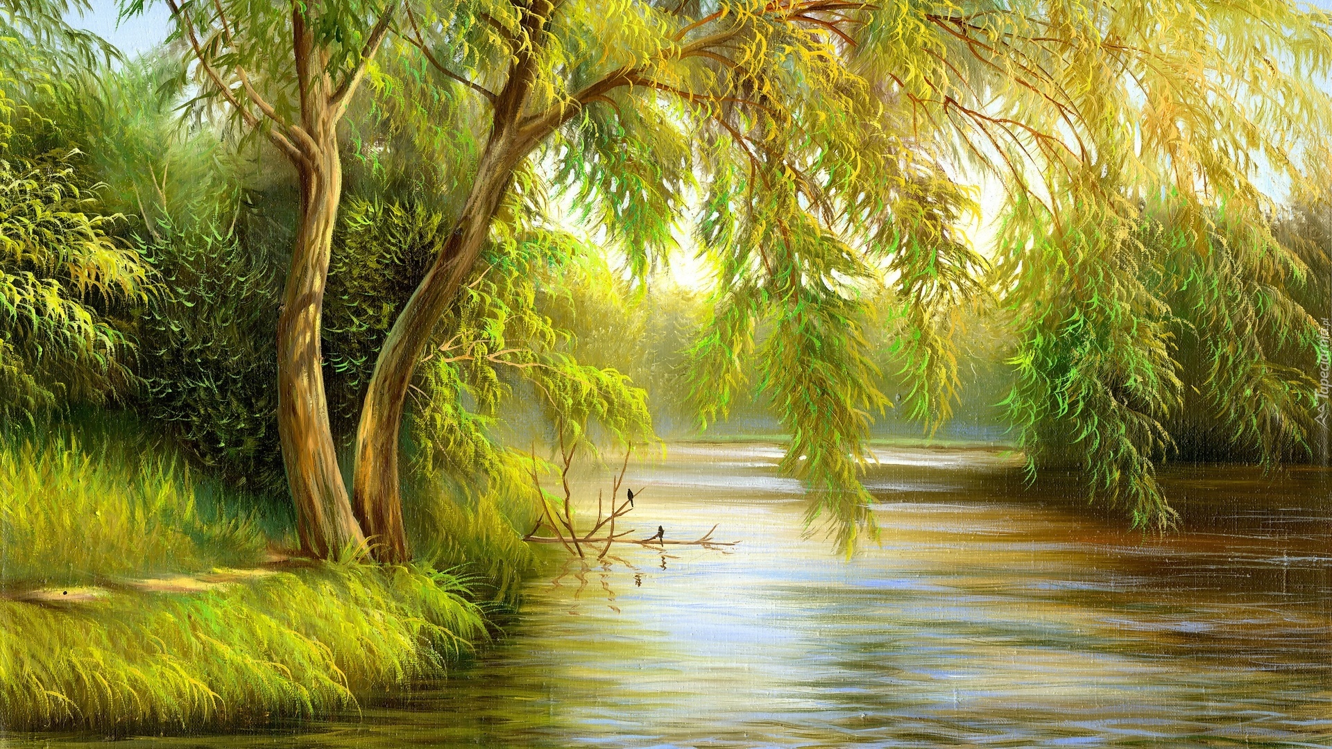 Edytor tapety: Malarstwo, Obraz, Rzeka, Drzewa