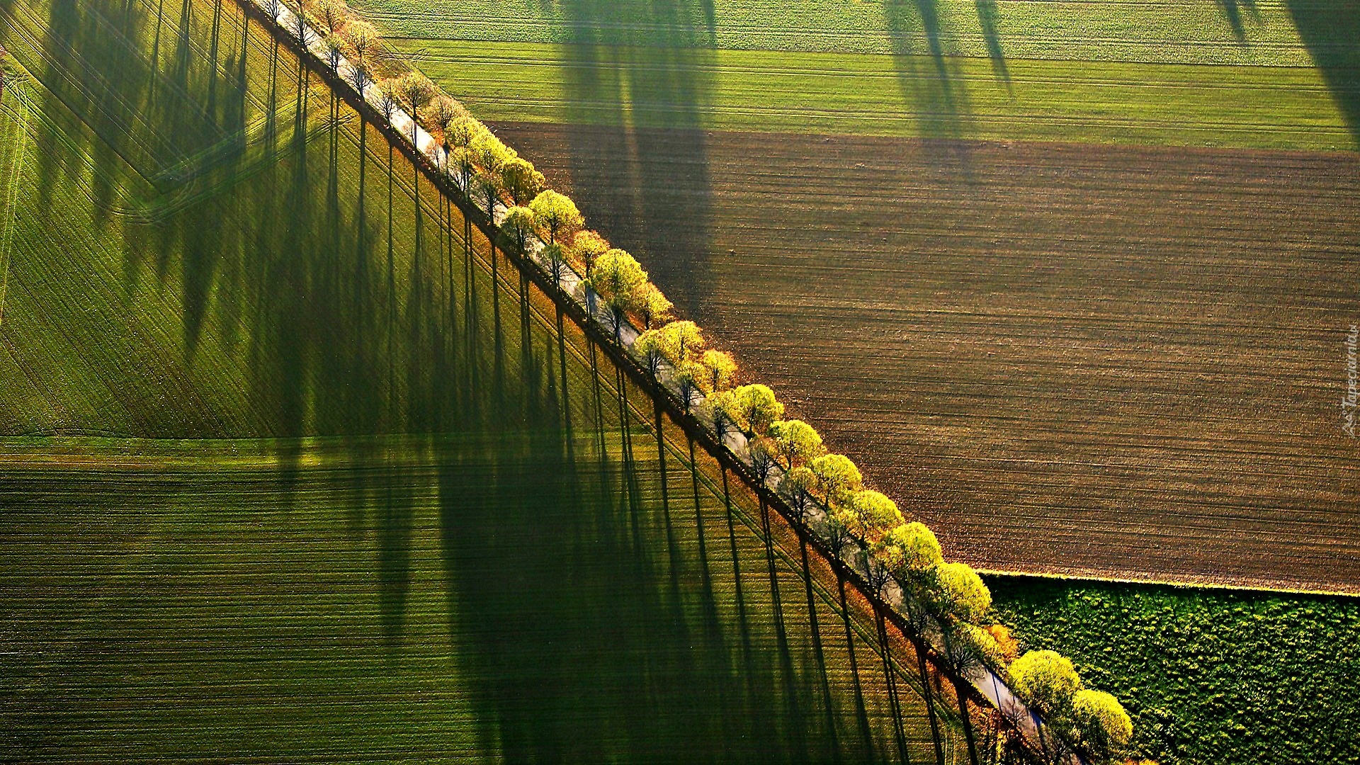 Edytor tapety: Pola, Droga, Drzewa, Cień, Z lotu ptaka