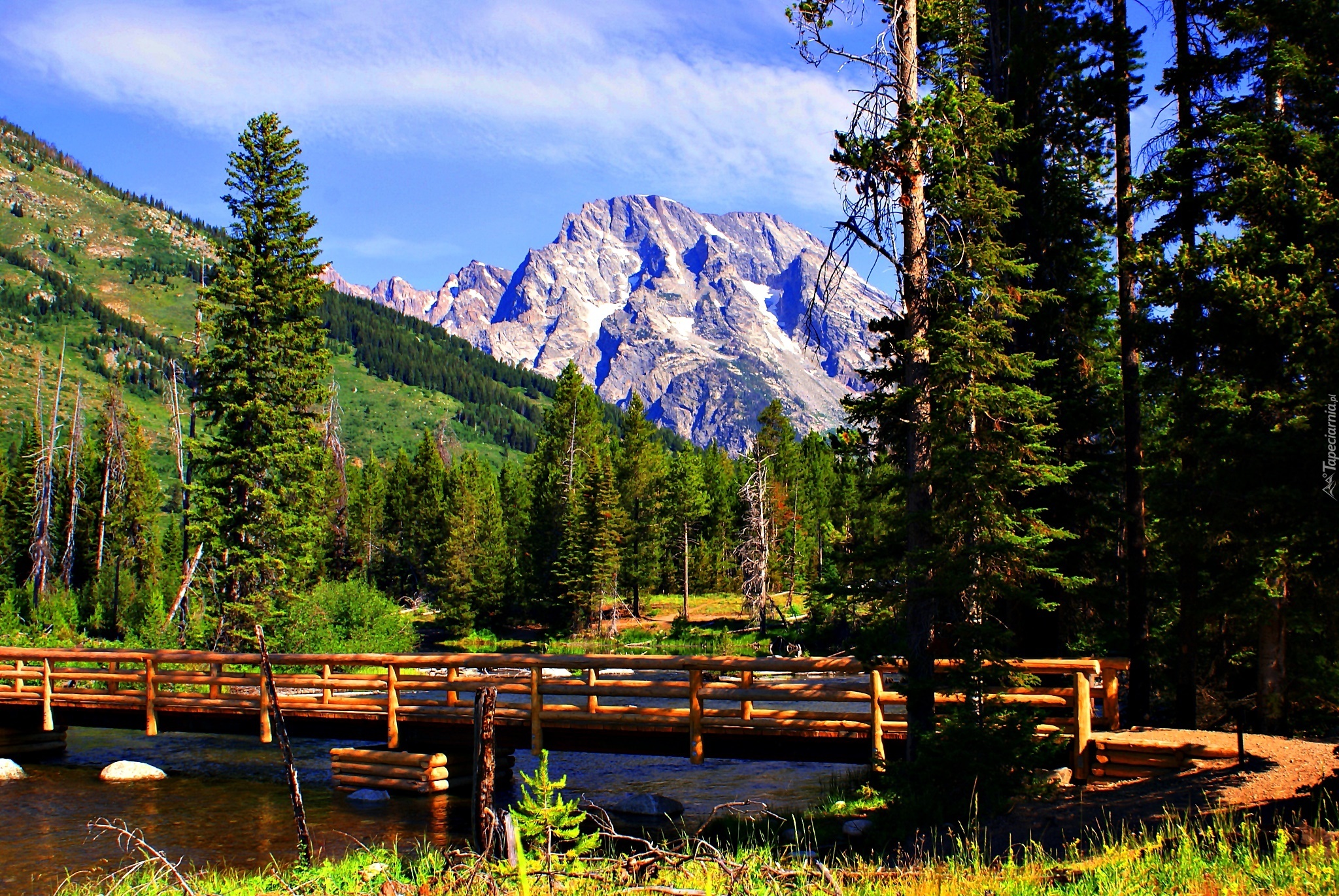 Edytor tapety: Rzeka, Most, Las, Góry