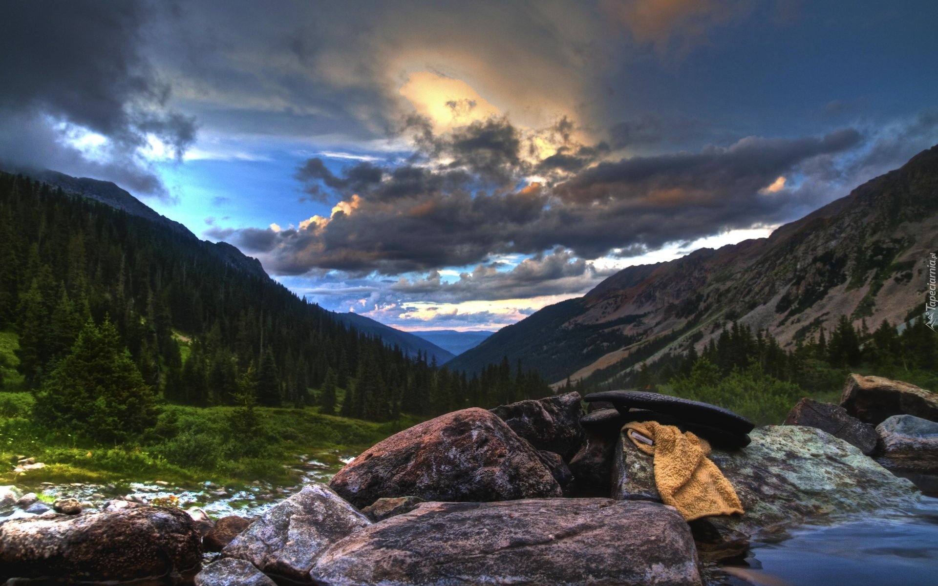 Edytor tapety: Krajobraz, góry, przyroda, las, chmury, niebo, skały