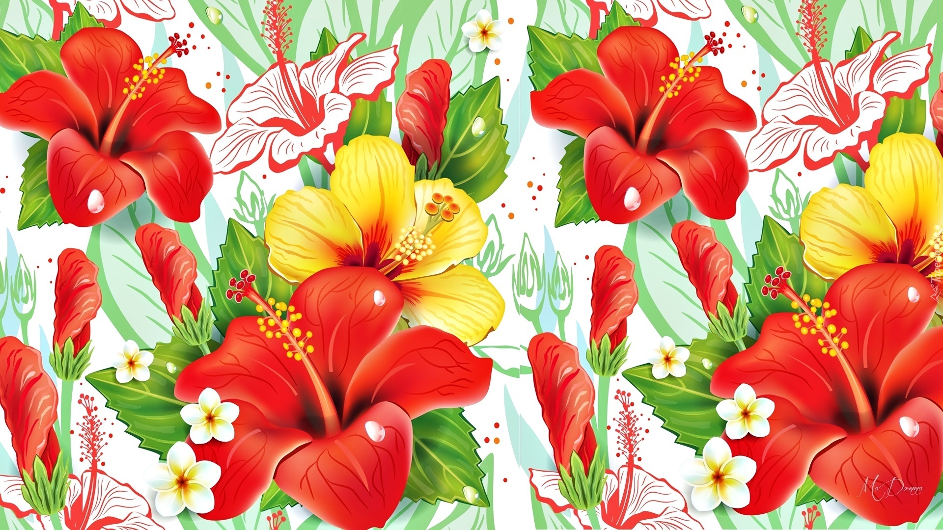 Edytor tapety: Hibiskusy, Kolorowe, Kwiaty, Art