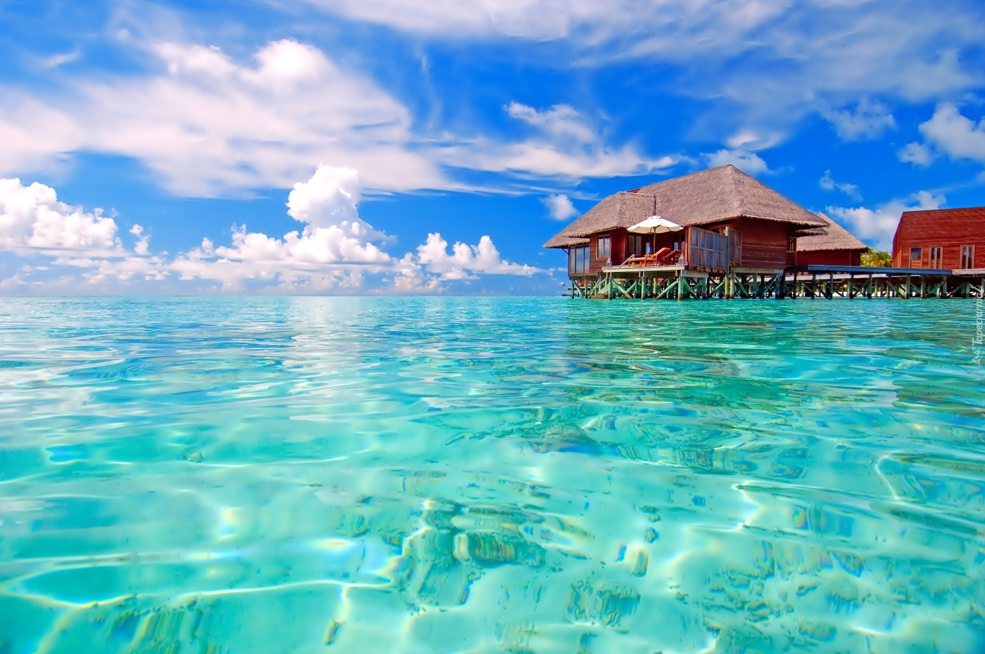 Edytor tapety: Domki, Morze, Chmury, Malediwy