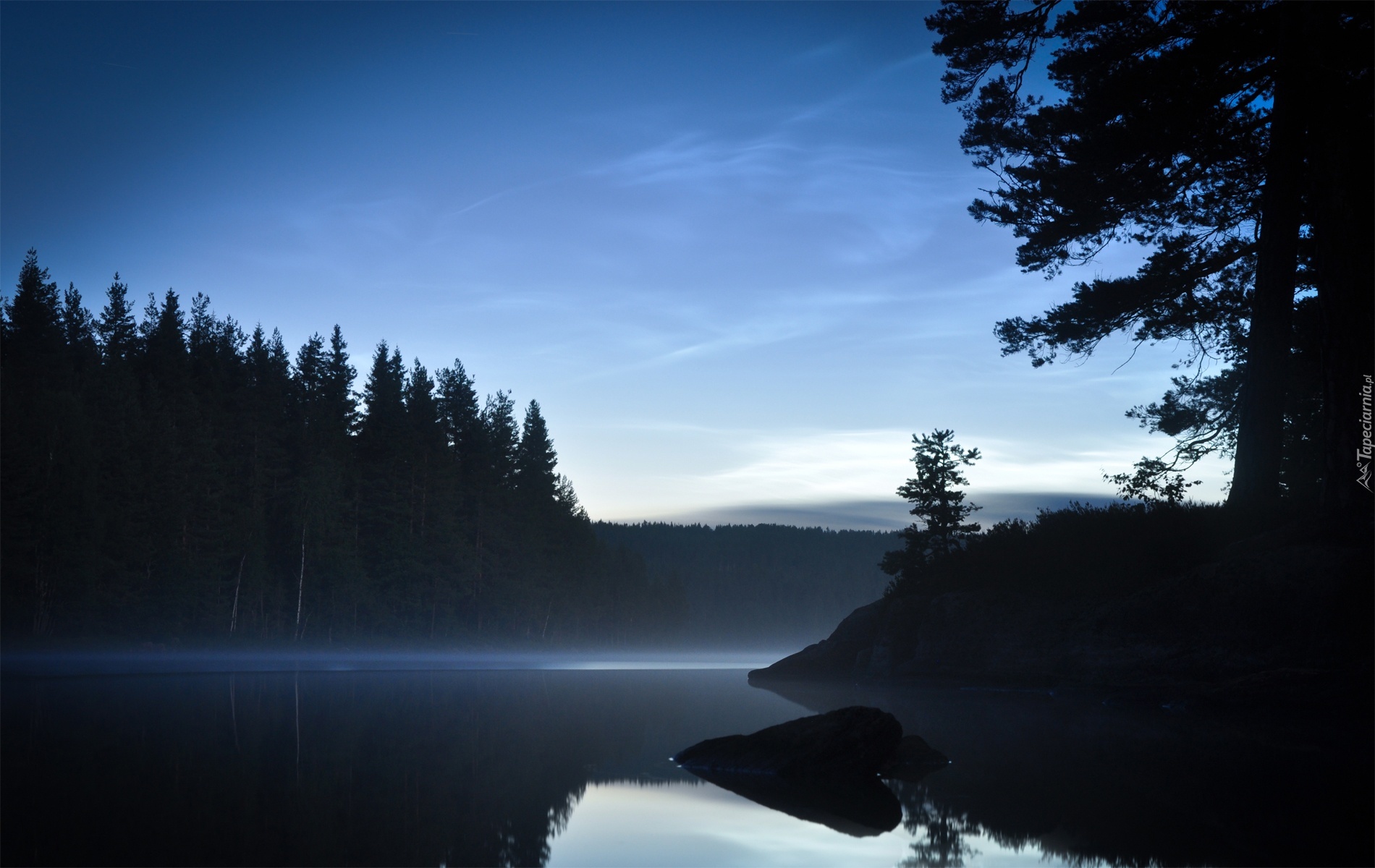 Edytor tapety: Jezioro, Mgła, Niebo, Lasy