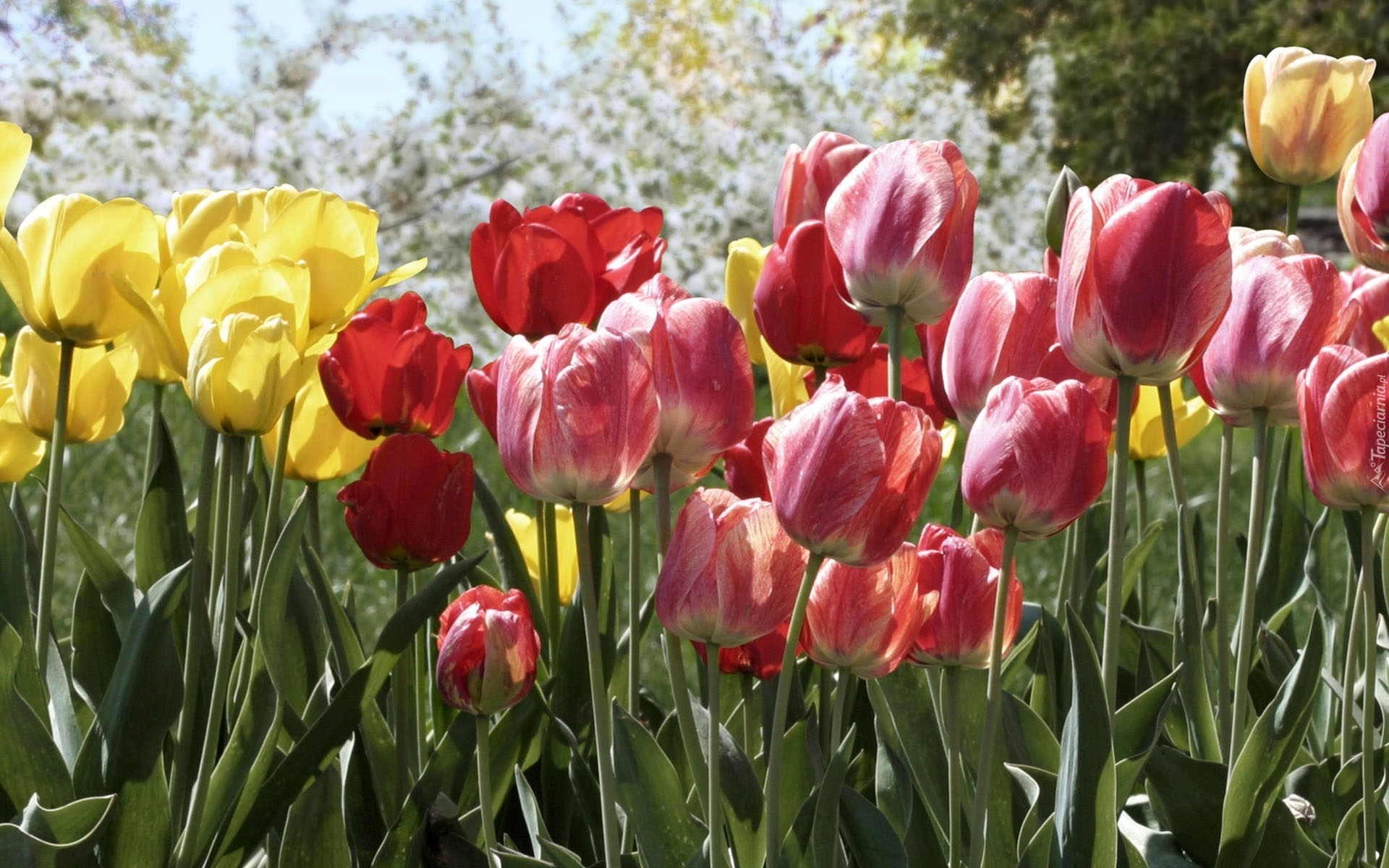 Edytor tapety: Różnokolorowe, Tulipany, Żółte, Czerwone, Czerwono, Białe