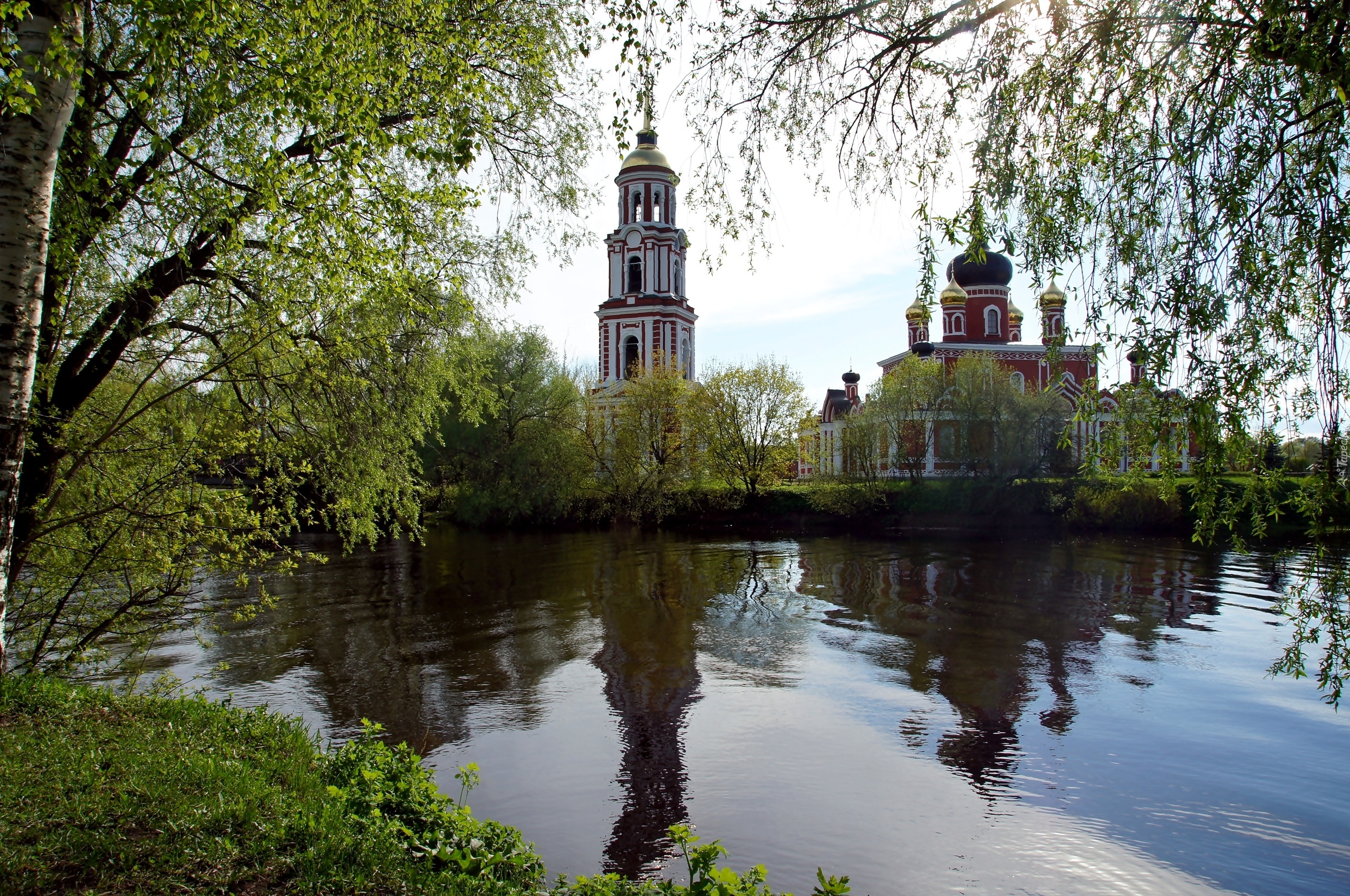 Edytor tapety: Cerkiew, Rzeka, Brzozy