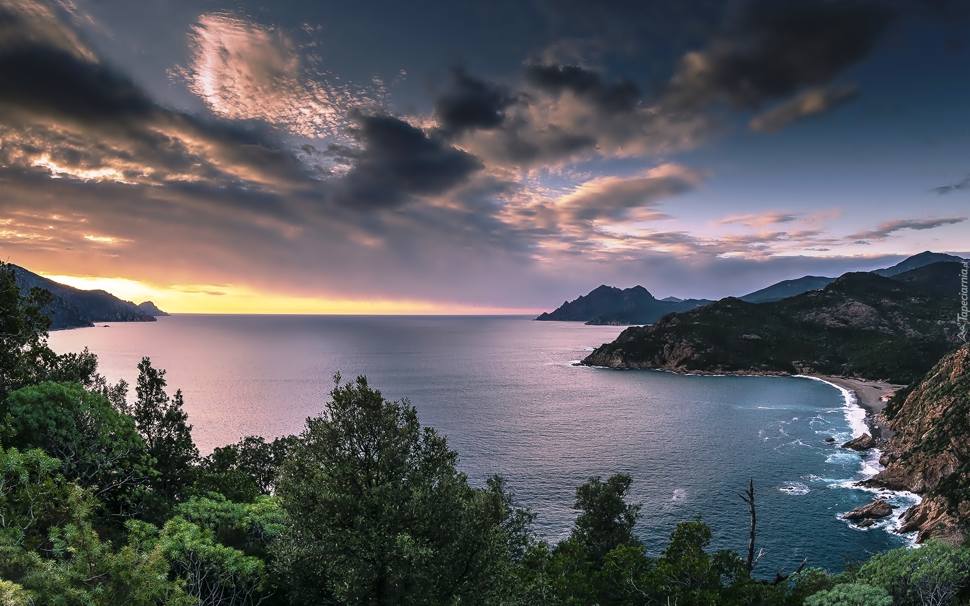 Edytor tapety: Góry, Morze, Las, Chmury