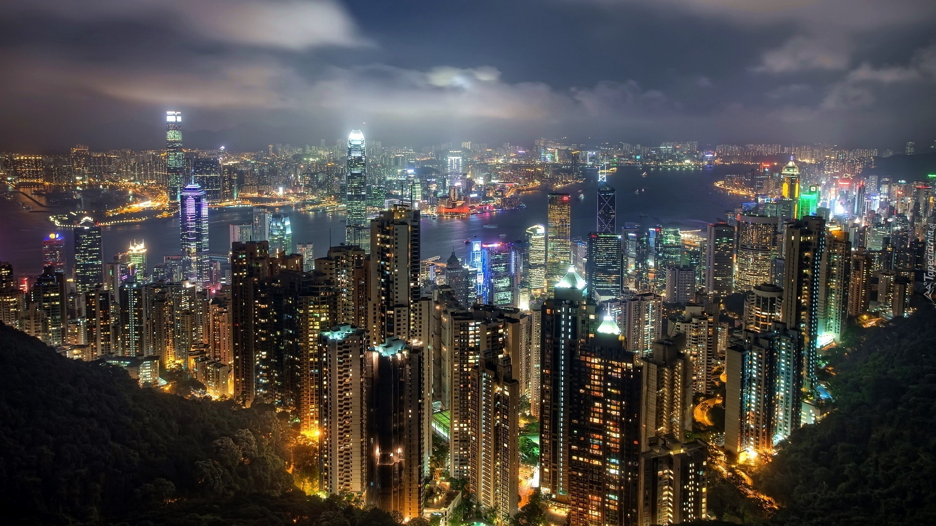 Edytor tapety: Hong Kong, Drapacze, Chmur, Miasto, Nocą