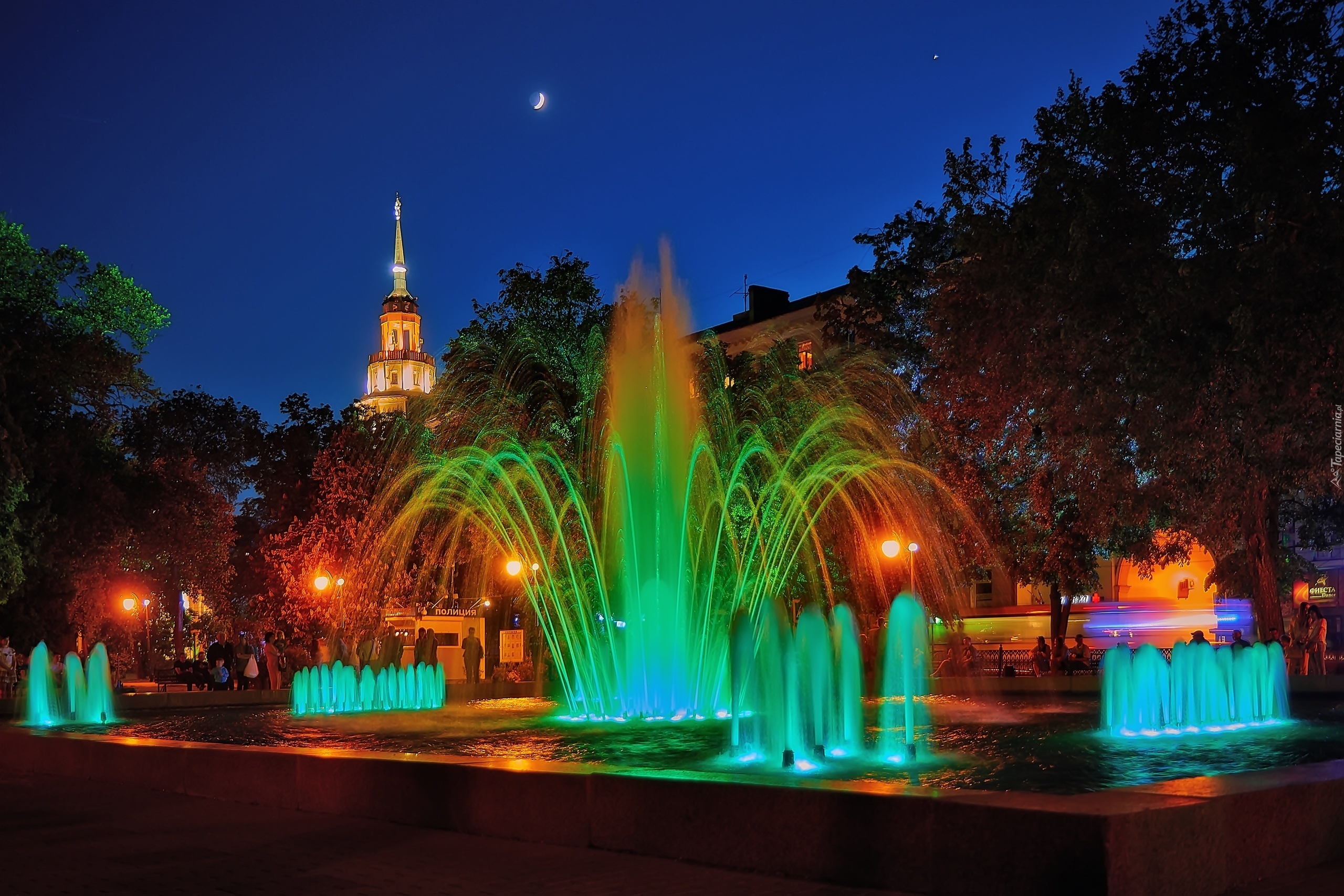 Edytor tapety: Podświetlane, Fontanny, Noc