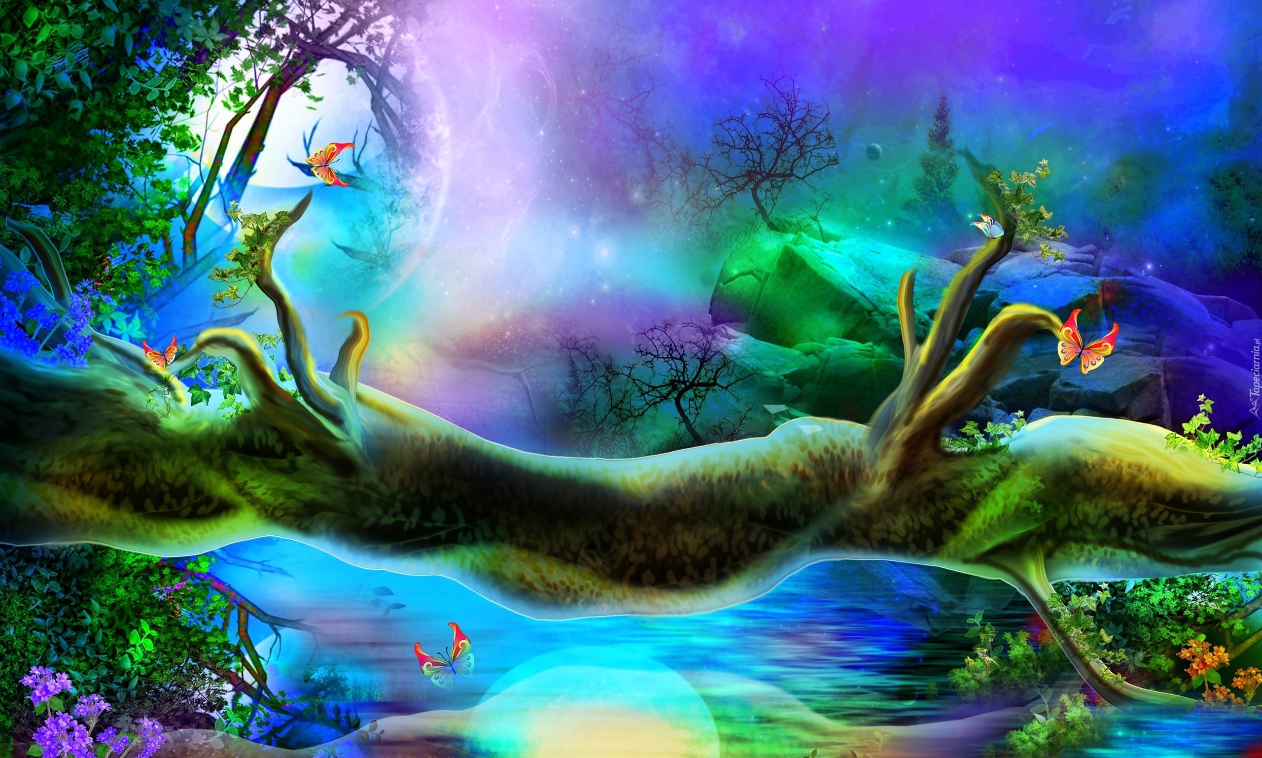 Edytor tapety: Fantasy, Motyle, Drzewa