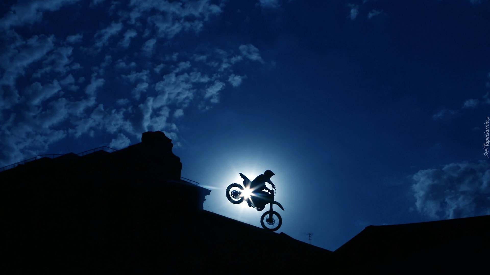 Edytor tapety: Noc, Niebo, Chmury, Dachy, Motocross