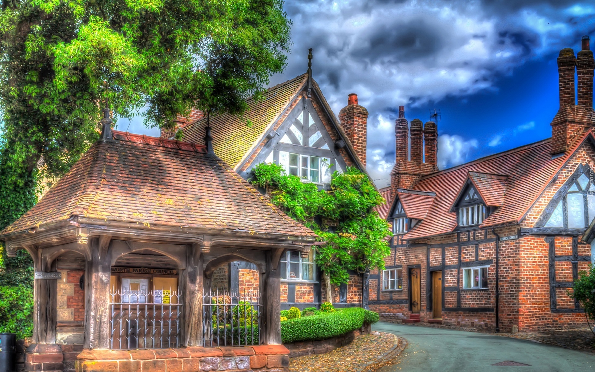 Edytor tapety: Ulica, Miasteczko, Domy, Drzewa, HDR