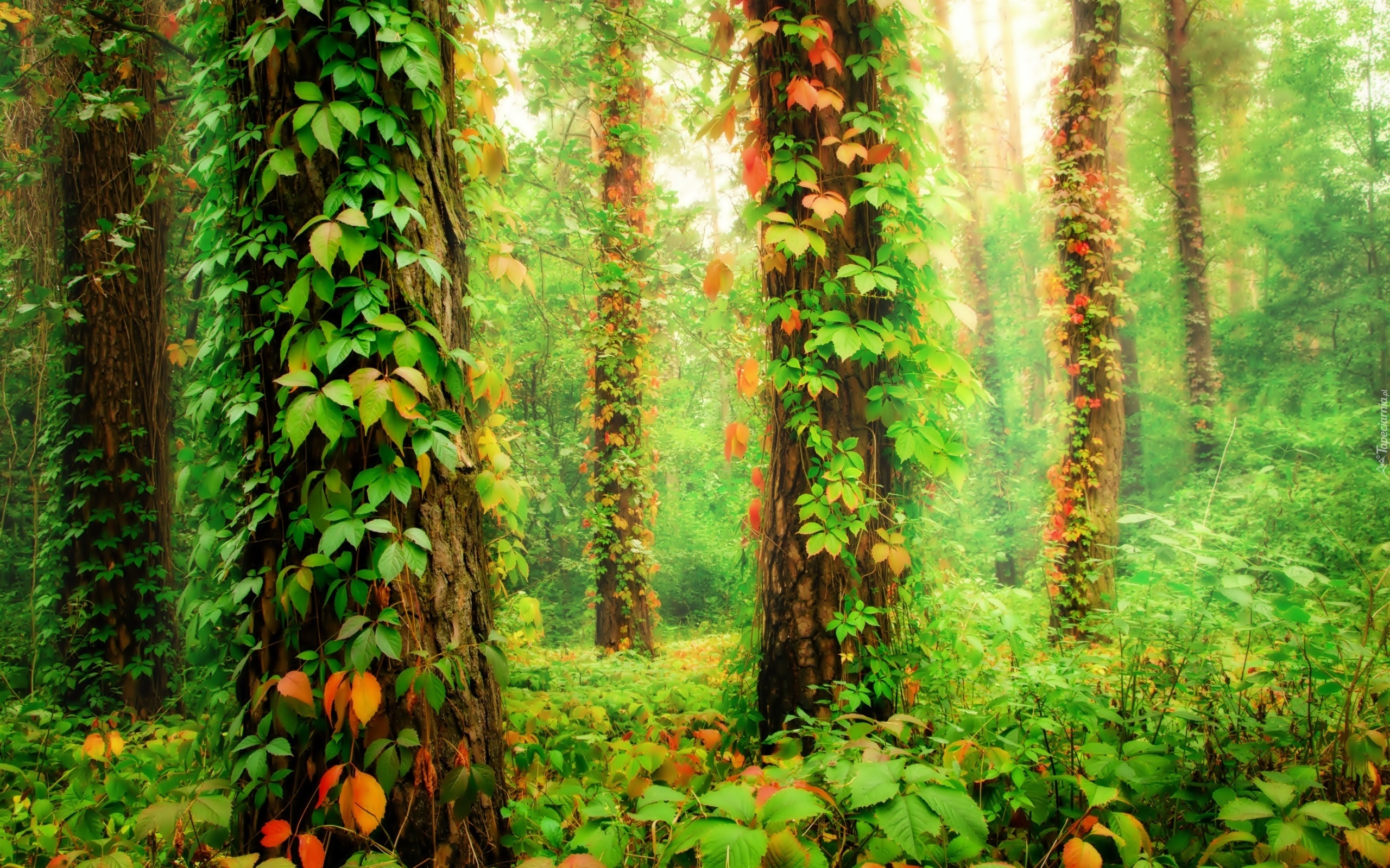 Edytor tapety: Magiczny, Las, Drzewa, Liście, Poranek