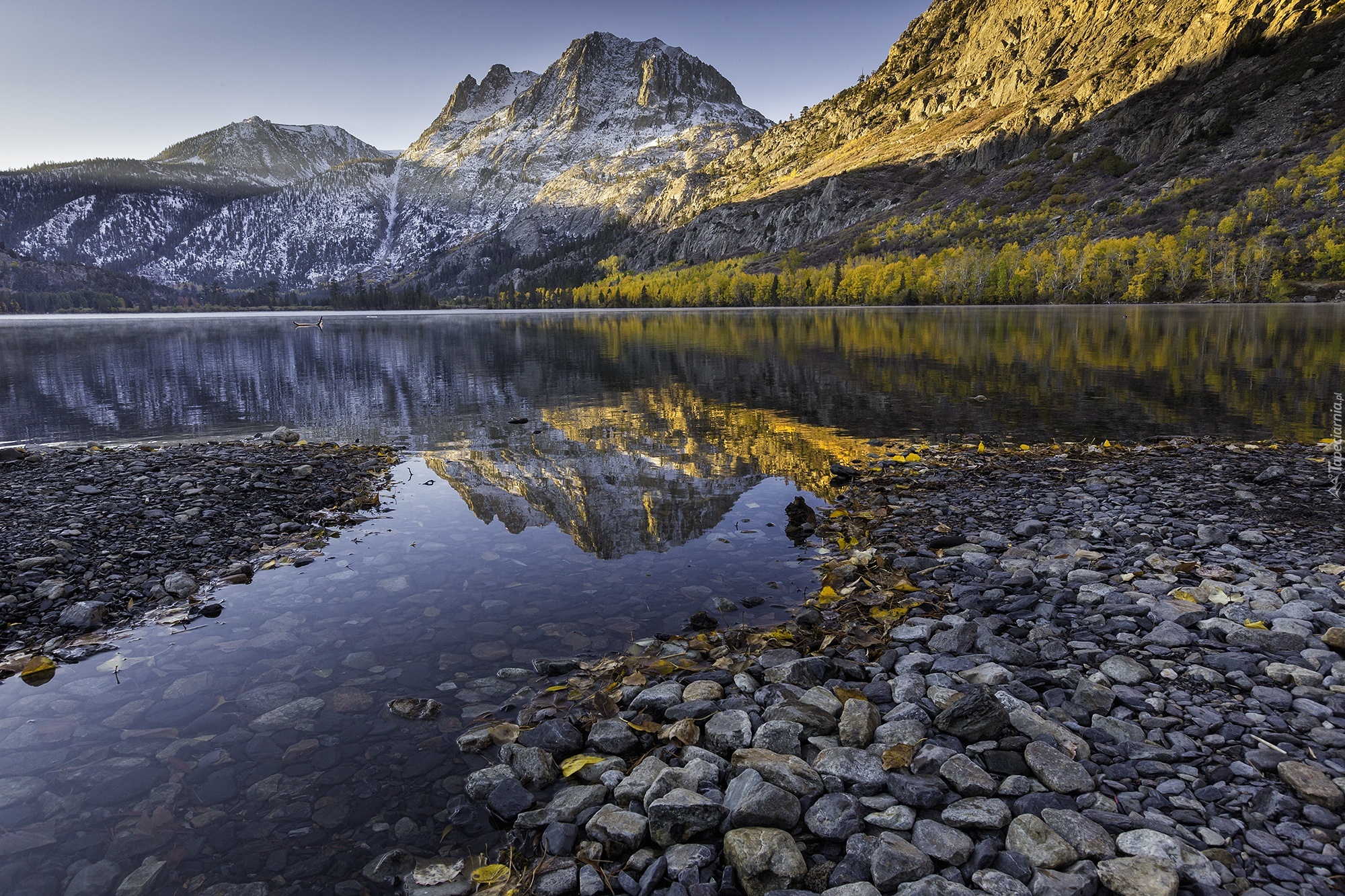 Edytor tapety: Góry, Jezioro, Kamienie, Odbicie