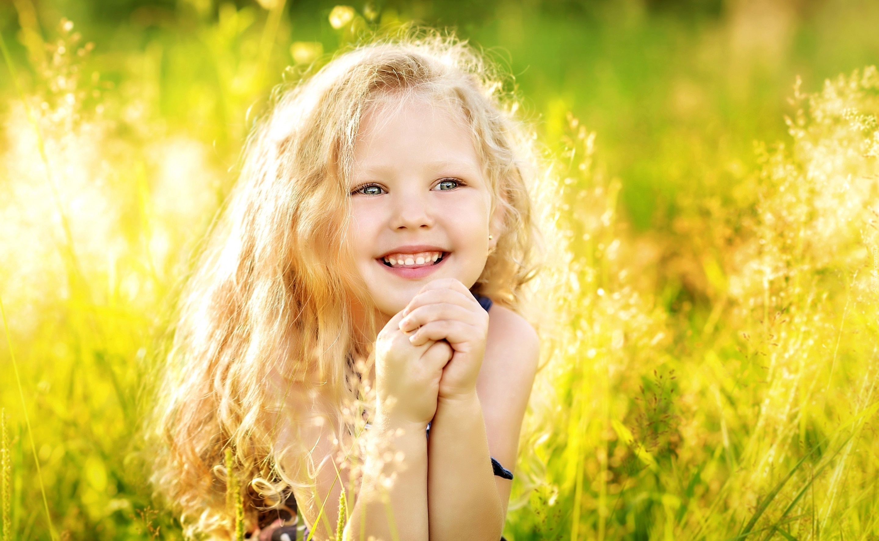 Edytor tapety: Uśmiechnięta, Dziewczynka, Trawa