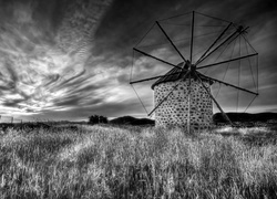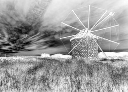 Edytor tapety: Wiatrak, Wschód Słońca, Pole, Zboże
