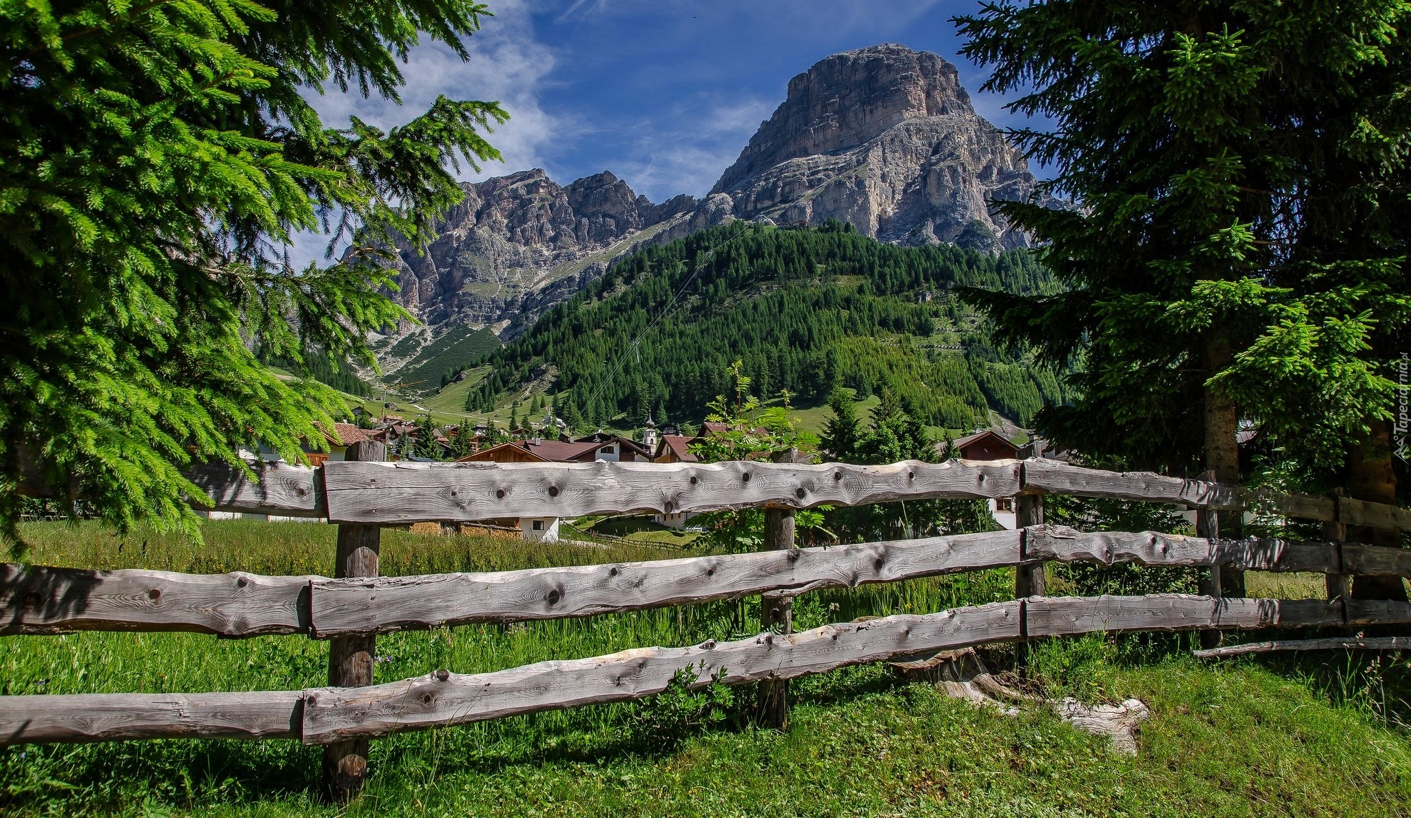 Edytor tapety: Góry, Lasy, Domy, Ogrodzenie, Wieś