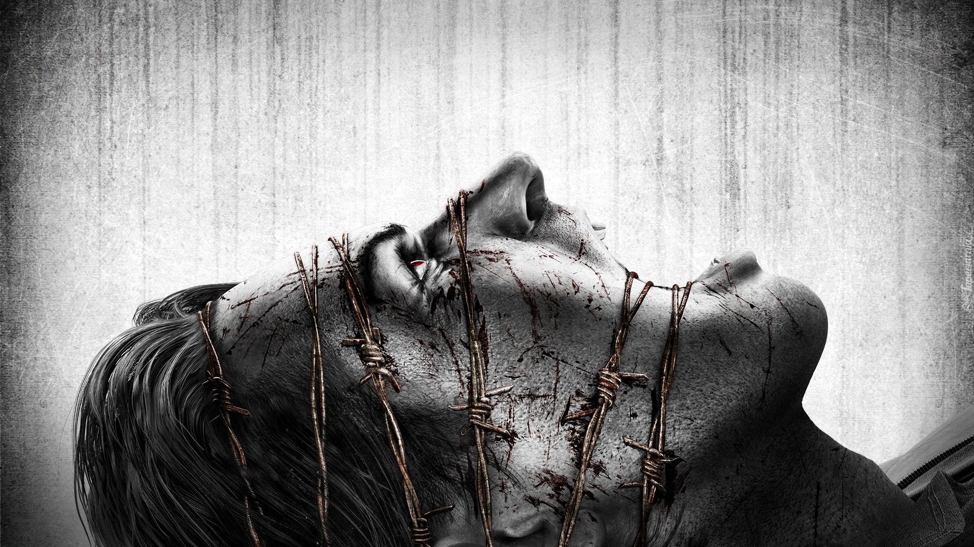 Edytor tapety: Mężczyzna, Twarz, Drut, Kolczasty, Blizny
