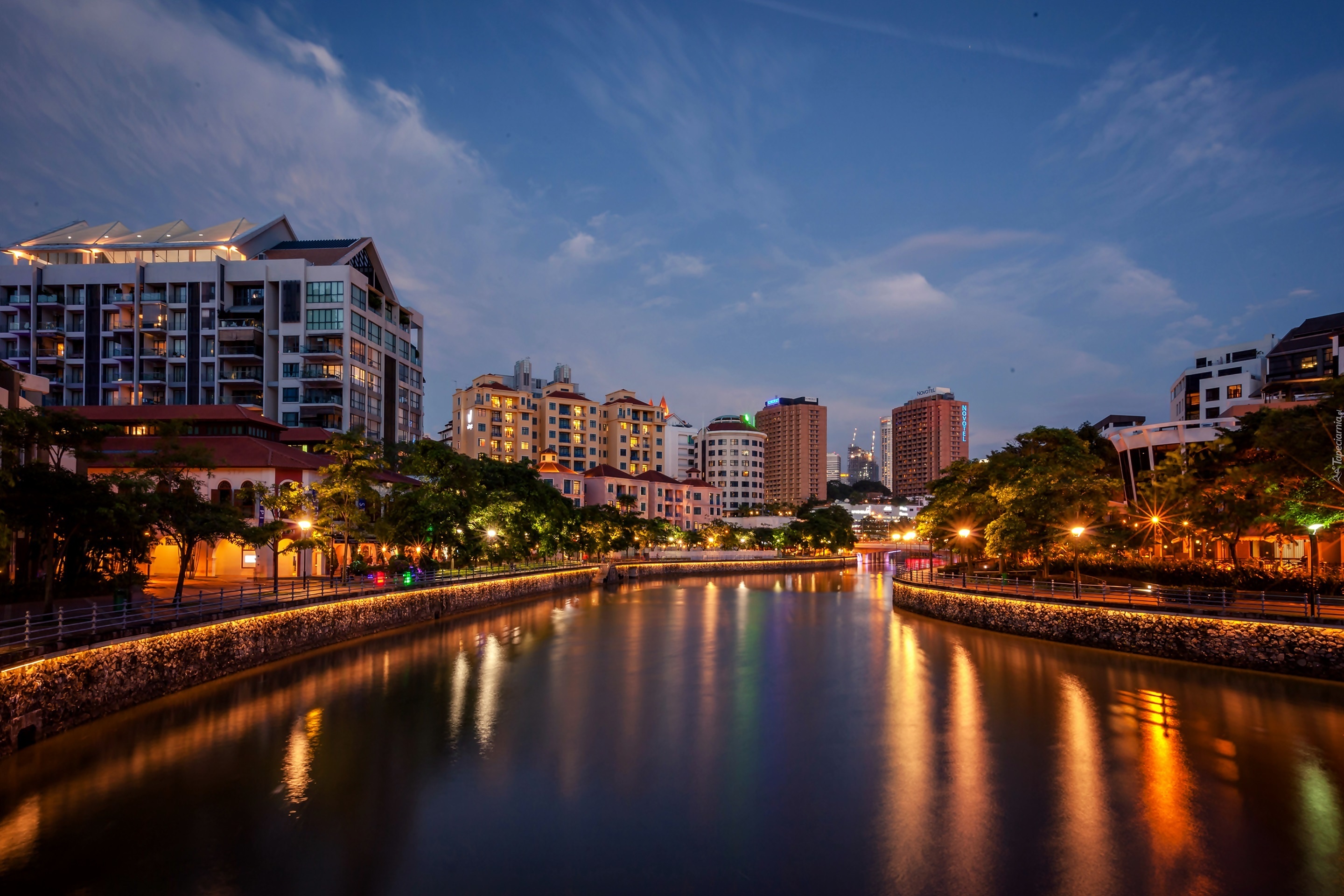Edytor tapety: Drapacze, Chmur, Budynki, Rzeka, Singapur, Nocą