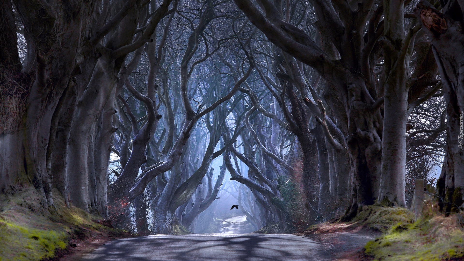 Edytor tapety: Droga, Drzewa, Las, Ptak