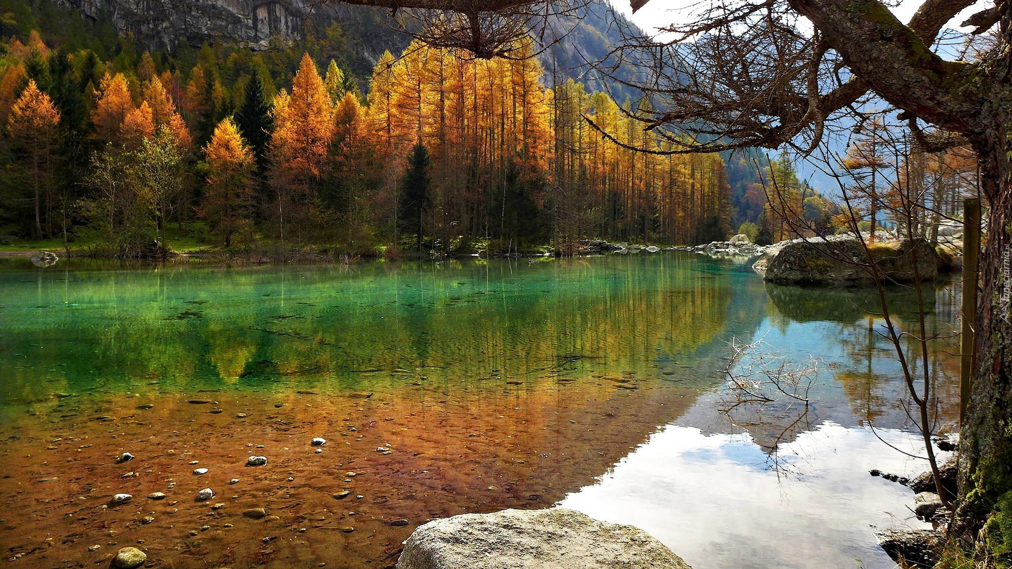 Edytor tapety: Jezioro, Las, Góry, Jesień